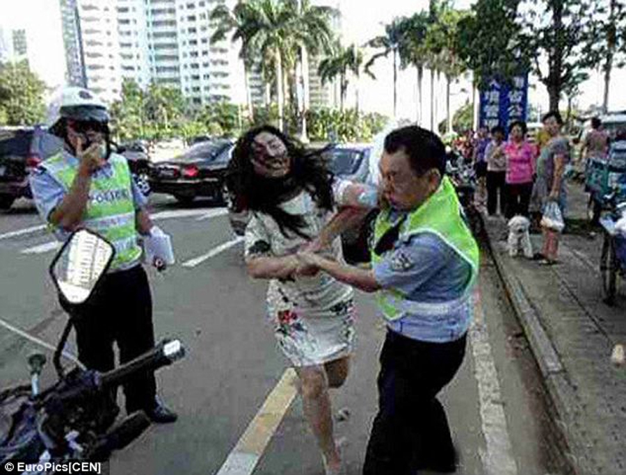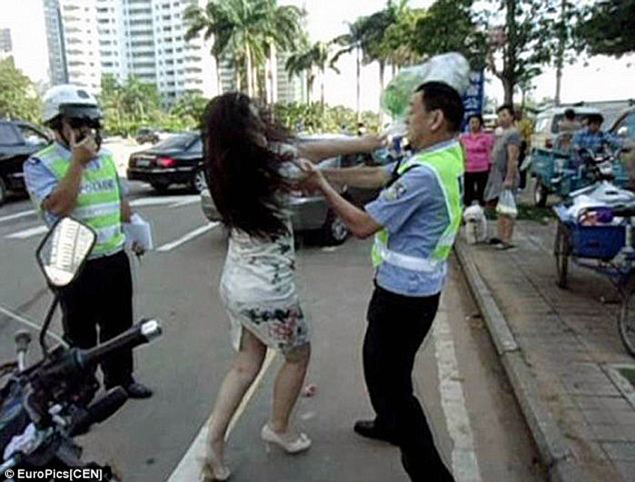 المربع نت – أقدمت امرأة صينية على ضرب شرطي مرور بعد أن حرر مخالفة بحقها مؤخراً في مدينة هايكو جنوب الصين. وبعد أن اعتدت (نيو توان) البالغة من العمر 35 عاماً على شرطي المرور، قامت بالإدعاء أن الشرطي هو من قام بضربها، ولكن مجموعة من الشهود العيان قاموا بتكذيبها بعد التقاط مجموعة من الصور تكشف عن حقيقة ما جرى. وذكر أحد الشهود أن هذه المرأة رفضت دفع الغرامة المالية التي حررها الشرطي بحقها بعدما ركنت سيارتها في منتصف الطريق لمدة دقيقة واحدة، بعدما أخبرته أنها لم توقف سيارتها بطريقة خاطئة، وبعد أصرارها الشديد على عدم إرتكابها أي مخالفة قامت بضرب الشرطي بطريقة عنيفة أمام الجميع. وتم نقل شرطي المرور إلى المستشفى ليتم علاجه من الكدمات العنيفة التي وجهتها هذه المرأة نحوه.