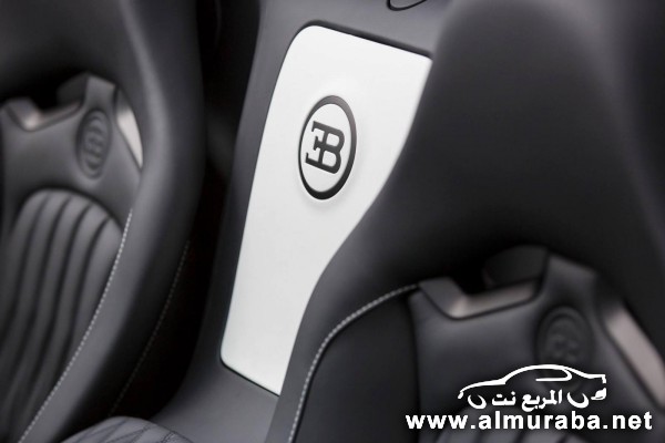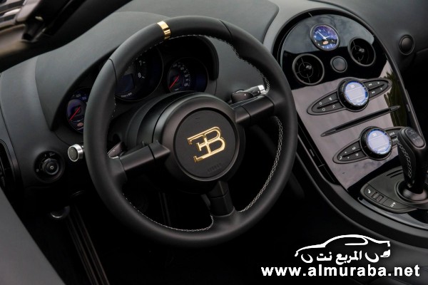 نسخة Veyron Grand Sport Vitesse جاءت بألوان البيانو المميزة الابيض والاسود مع علامة بوجاتي الذهبية تتوسط مقود السيارة وناقل الحركة.