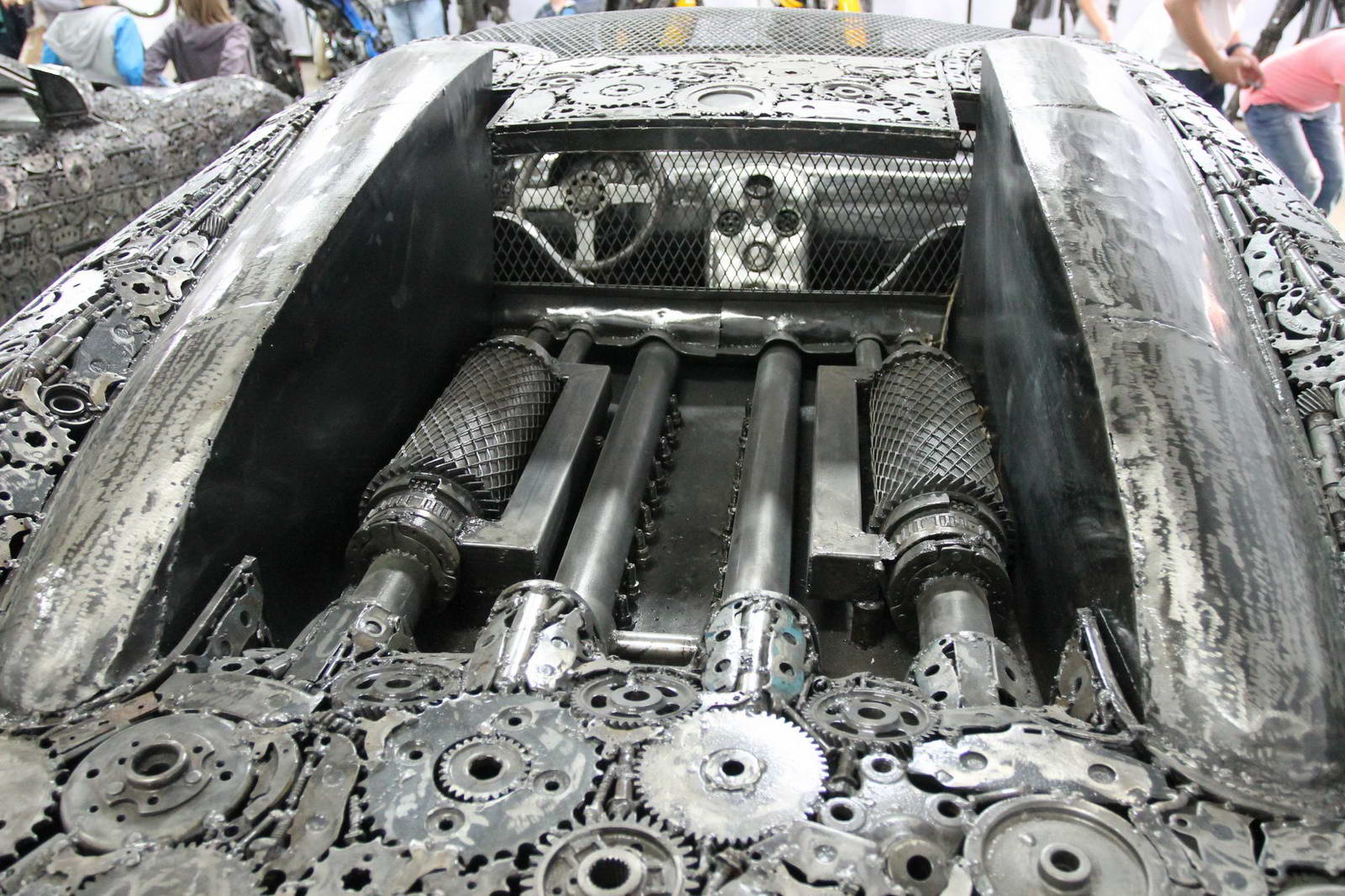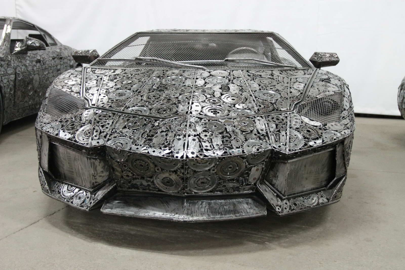 تحديدا، قام الفنانون بتشكل سيارات مرسيدس 300 SL وبوجاتي فيرون ولامبورجيني أفينتادور وفيات 500.