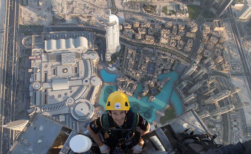 المربع نت – نشر رومان جروجان سائق فريق لوتس للفورملا 1 صور له على حسابه الشخصي على موقع التواصل الإجتماعي تويتر وهو يتسلق برج خليفة أطول مبنى في العالم. حيث بلغ جروجان، قمة برج خليفة بدبي والذي طورته شركة إعمار العقارية، الشريك الرسمي للفريق. ونجح غروجان في خوض هذا التحدي الجديد خلال زيارته الأخيرة إلى دبي، حيث أمضى 3 ساعات في تسلق البرج وصولاً إلى أعلى قمته، وبذلك يكون واحداً من قلائل المشاهير الذين حققوا مثل هذا الإنجاز المميز.