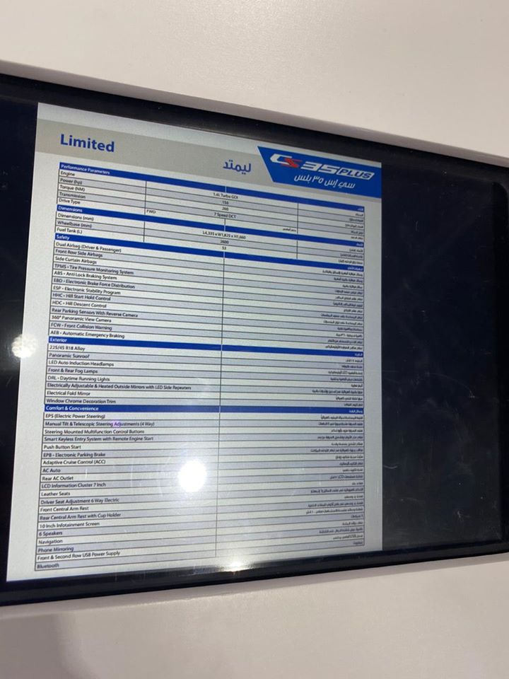 كما تأتي بمحرك 4 سلندر تيربو يولد قوة 233 حصان مع ناقل حركة اوتوماتيكي من 6 سرعات وبعزم دوران ٣٦٠ نيوتن متراما سيارة شانجان CS35 بلس الجديدة فتأتي بتصميم انيق بشبك امامي نحيف ذو شقوق متعرجة ومصابيح LED.