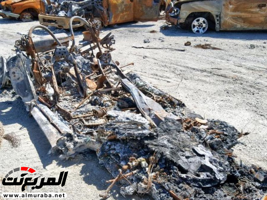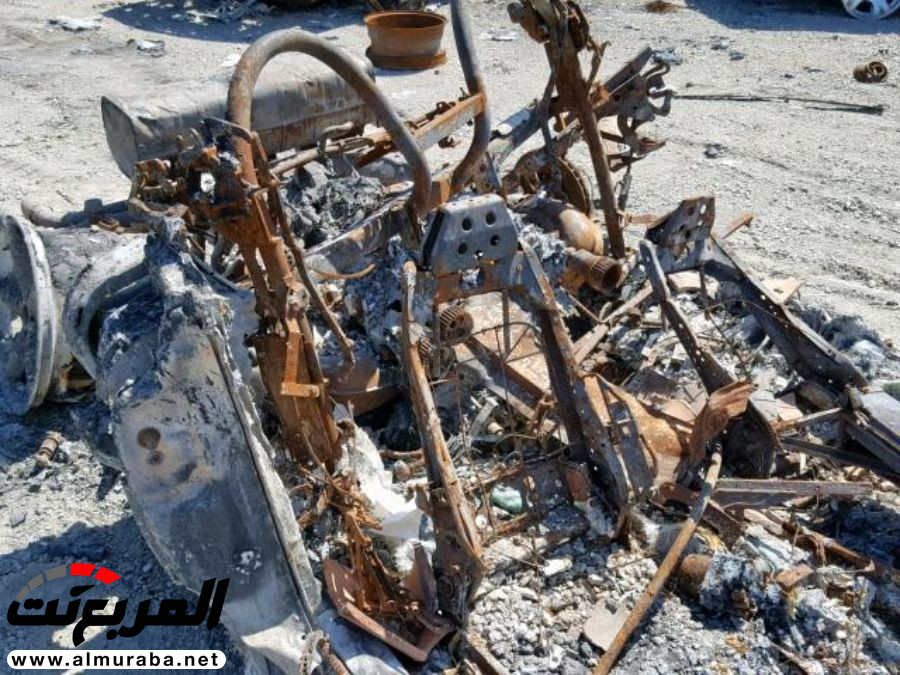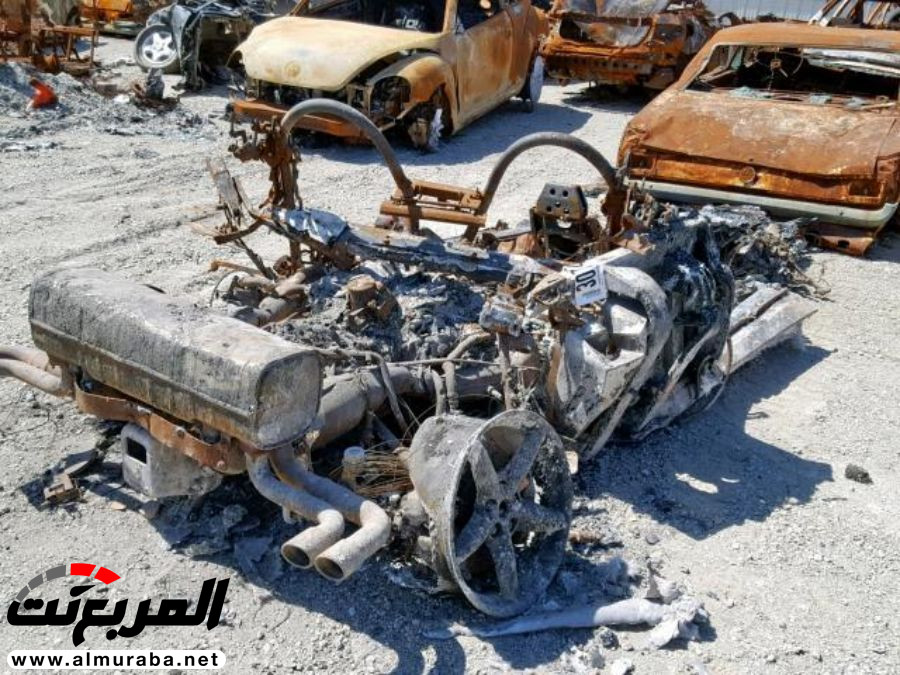 ما ترونه هنا هو قطعة معدن متفحمة ومدمرة تماماً، وبخلاف العجلات، لا يمكن لأحد التعرف على نوع السيارة من مجرد النظر إلى حالها المزري الآن، ولكن لأنها “فيراري” فيبدو أن أحدهم يرغب في الحصول على أي ثمن لها وتعويض ولو بسيط لخسارته.