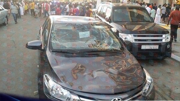 المربع نت – تعرضت سيارة أحد مشجعي نادي الاتحاد السعودي لكرة القدم لأضرار بالغة في الهيكل الخارجي وكُسر زجاجها الامامي بينما كان المشجع يحاول شراء تذكرة لمباراة فريقه ضمن دوري عبداللطيف جميل للمحترفين.