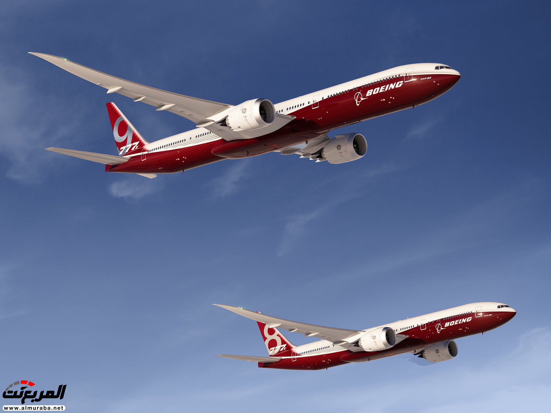 تحمل الطائرة محرك GE9X الذي سيقدم استهلاك وقود أقل بنسبة 5% من المنافسين مع معدل انبعاثات أقل، مع جناحين بطول 71.9 متر، مقصورة بارتفاع 2.4 متر وبعرض 6 متر، حيث ستكون نسخة 9-777 أطول من 8-777 بفارق 10 متر، كي تبلغ مساحة الأولى الداخلية 342.7 متر مربع، بما يعادل مساحة منزل كبير فاخر.