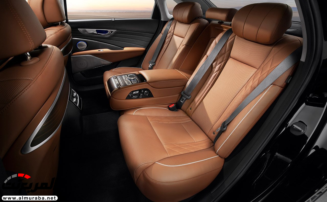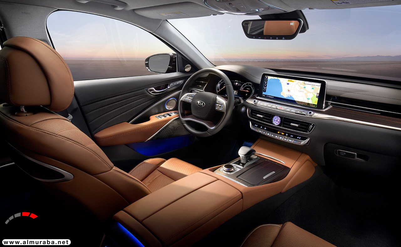 حقيقة، كيا أبدعت في المقصورة، حيث اتبعت فيها “لغة البساطة”، وبذلك فهي تتألف من أفخم الجلود والأخشاب والمعادن، مع توافر خيارات مختلفة للون الفرش بينها الأحمر، الأسود، البني القاتم، البني الفاتح ويقع في مركز الكونسول الوسطي ساعة من العلامة السويسرية الفاخرة موريس لاكروا، كما أنه متوفر نظام ليكسكون بـ 17 سماعة 900 وات يقدم تجربة صوتية مجسمة، إضاءة محيطية بـ 64 درجة مختلفة بالتعاون مع معهد بانتون للألوان، 20 وضعية لمقعد السائق، 16 وضعية لمقعد الراكب الأمامي، 14 وضعية للمقاعد الخلفية، مع مميزات التدفئة والتبريد.