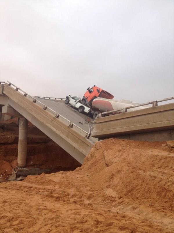 وبحسبها فقد بيّنت المعلومات أن حادث انهيار الجسر الذي وقع قرابة السادسة صباحاً، فاجأ قائد السيارة الصغيرة وناقلة الوقود، حيث دهست الناقلة السيارة الصغيرة؛ ما تسبّب في إصابة قائدها ومرافقه واحتجاز أحدهما الذي تعرَّض لكسرٍ في الفخذ حسب المعلومات الأولية، حيث تم استخراج المصاب عن طريق فرق الدفاع المدني ونقل المصابين الثلاثة للمستشفى.