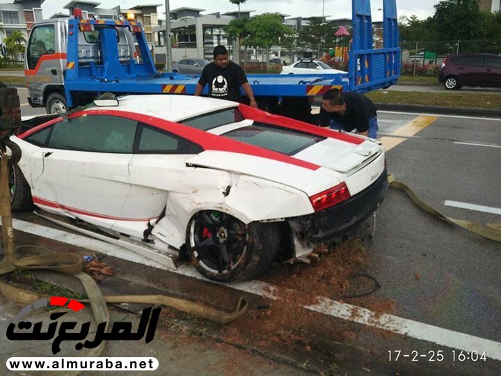 وحسب التقارير فهذه اللامبورجيني الجالاردو مملوكة لمراهق اشتراها له أهله إثر بلوغه 18 عامًا, ويبدو أنّه استطاع قيادتها لبضعة أشهر حتى حدث ما ترونه أدناه واصطدم بها في ماليزيا وتضررت بشدة بعد انزلاقها على الطريق الرّطب وسقوطها في خندق, ولحسن الحظ لم يصب السائق والراكب سوى بإصابات بسيطة للغاية.