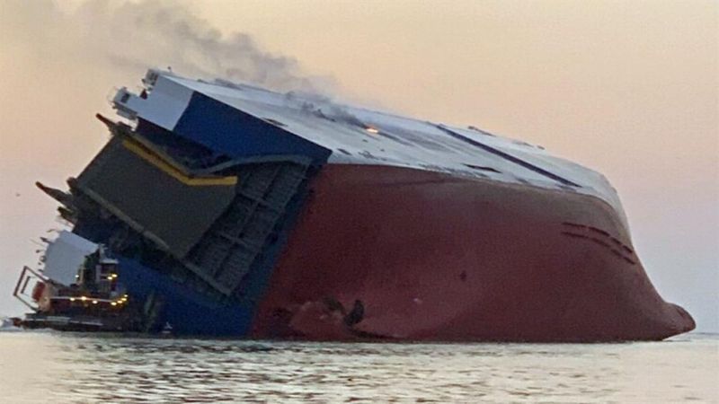 المربع نت – فَقَد أحد وكلاء السيارات بالمملكة مئات من السيارات في البحر، نتيجة انقلاب سفينة “جولدن راي” في ميناء برونزويك في جورجيا بالولايات المتحدة، حيث كانت ضمن شحنة عليها قبل أن تفقد السفينة توازنها وتنقلب.