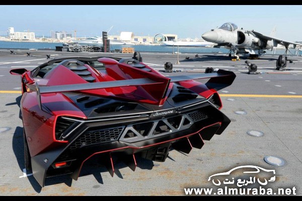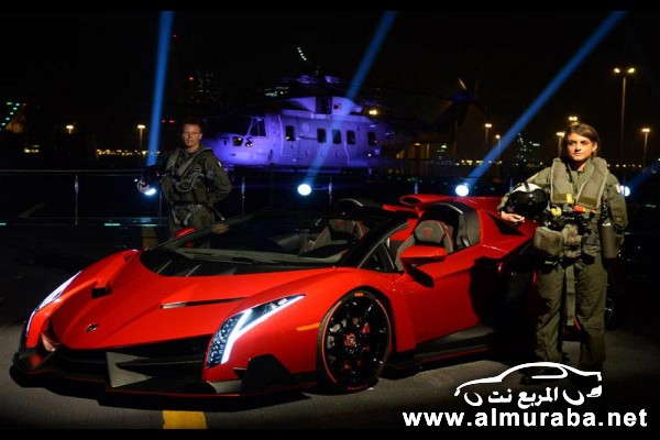سيارة لامبورجيني Veneno Roadster رست على حاملة الطائرات البحرية Nave Cavour فى ميناء زايد بمدينة ابو ظبي و كان من الشخصيات الهامة التى حضرت هذا الحدث السيد جورجيو ستاراتشي السفير الايطالى للولايات المتحدة و اللواء لقوات اعالى البحار باولو تريو .