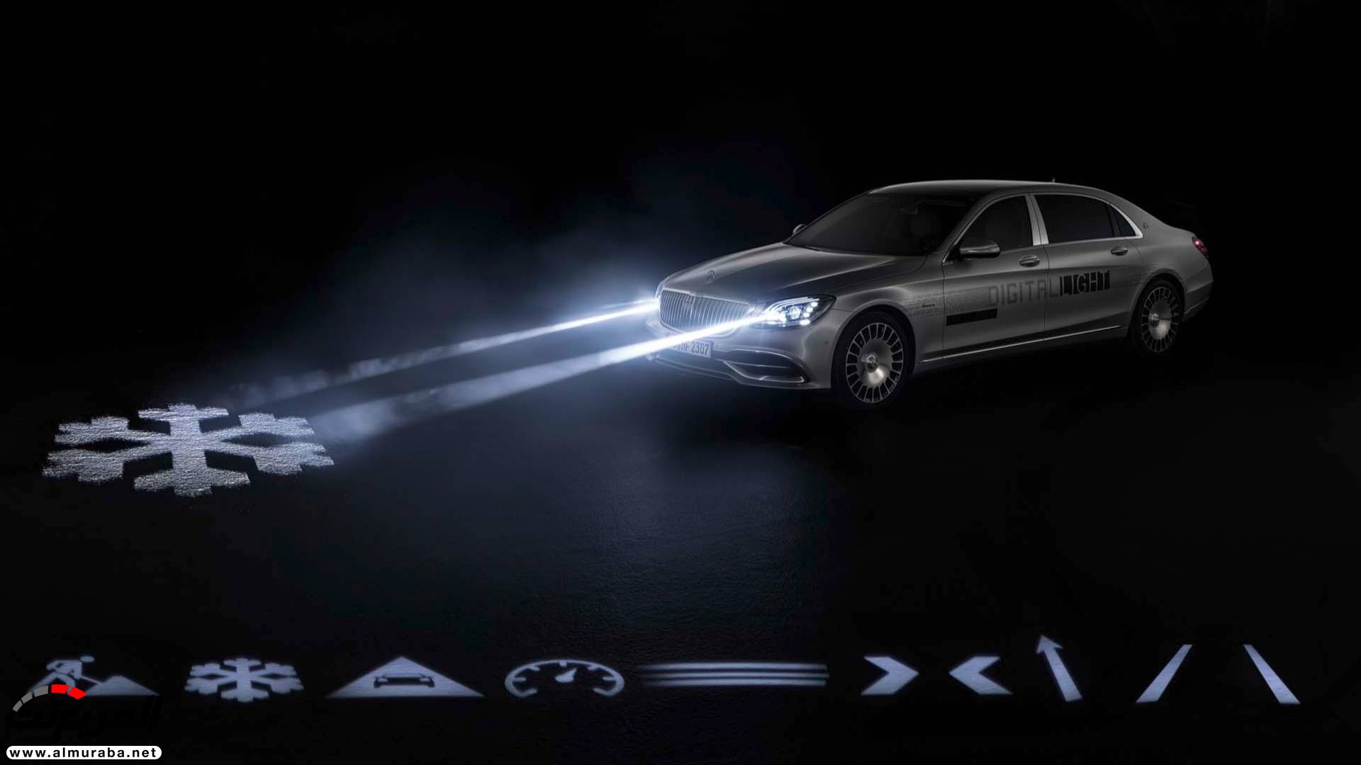 تسمى تقنية “الإضاءة الرقمية”، وقد تم استعراضها في مايباخ S-Class، إذ تقوم المصابيح الأمامية بتجسيد الأشكال على الطريق واستعراض مختلف الكلمات.