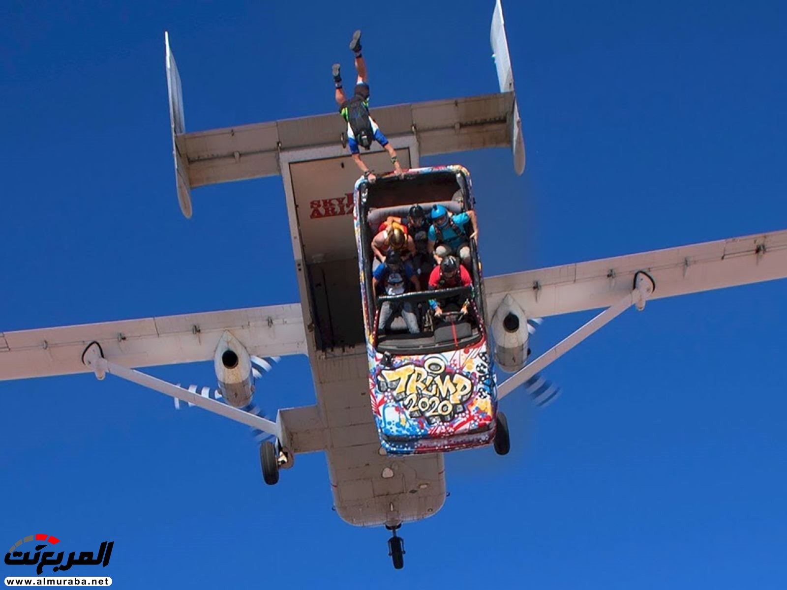 ويبدو أن مجرد القفز بالسيارة من الطائرة لم يكن تحديا كافيا لهم، حيث قرروا أن يظلوا باقيين في السيارة أثناء سقوطها في الجو، الأمر الذي زاد من خطورة الموقف، حيث أنه من الصعب توقع رد فعل جسم صلب يزن عدة أطنان أثناء سقوطه من ذلك الإرتفاع بتلك السرعة.