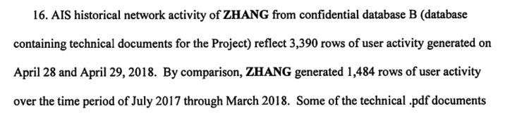تقول الشهادة الخطية أن تشانغ كان ضمن فريق الكمبيوتر، حيث قام بتصميم واختبار لوحات الدوائر لتحليل بيانات المستشعر، وحسب الشكوى، فقد قام بسرقة ملف PDF مكون من 25 صفحة لمخططات كهربائية ﻷحد لوحات الدوائر التي تشكل البنية التحتية التقنية الخاصة بآبل للسيارات ذاتية القيادة.