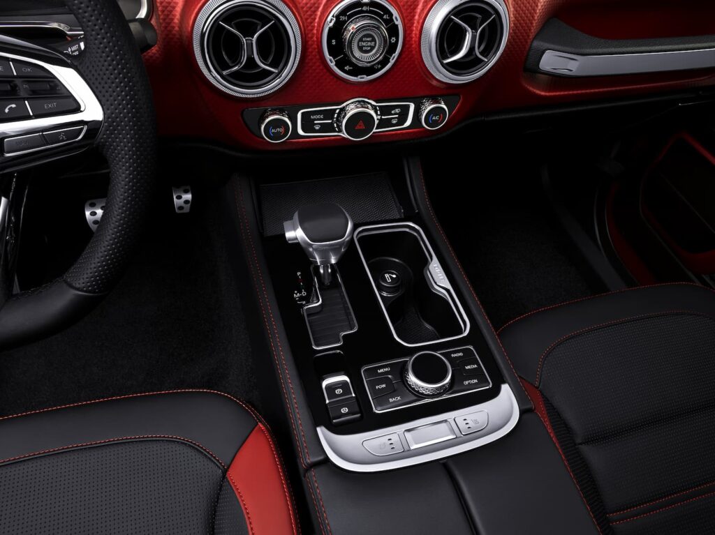 كما يتصل المحرك بناقل الحركة الأوتوماتيكي من 6 سرعات، و جاء موجهاً إلى نظام دفع رباعي 4X4 – 4WD، في حين يتميز بمعدل استهلاك وقود 10 لتر/100 كم، وتبلغ سعة خزان الوقود 75 لتر، وتبلغ السرعة القصوى: 150 كم/ساعة، كما