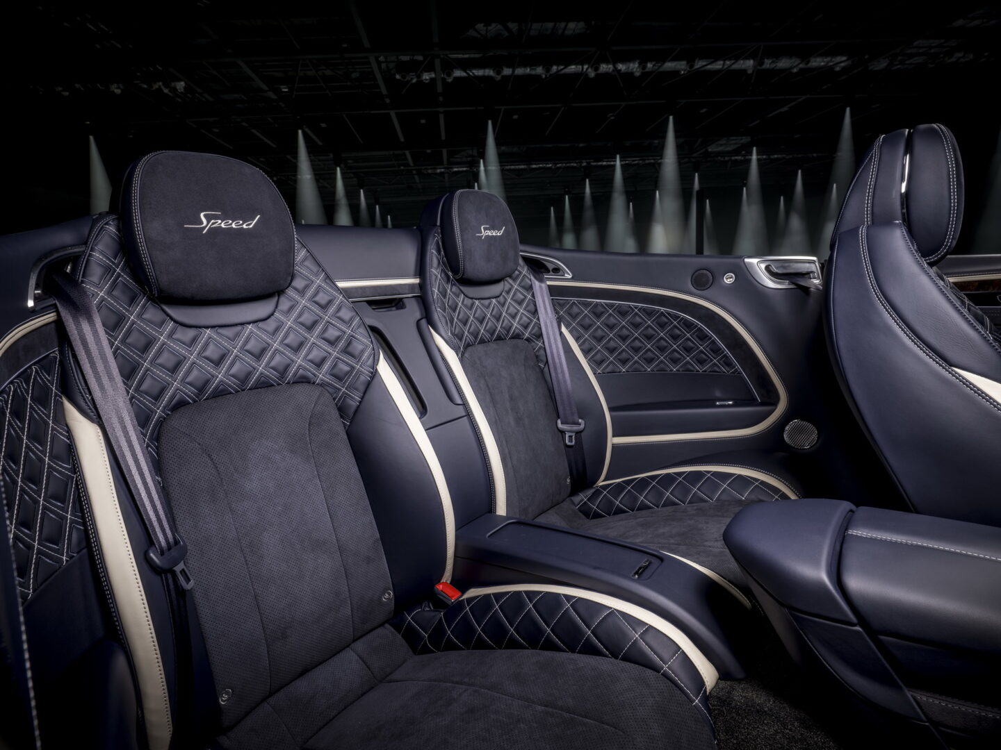 في الداخل، تأتي السيارة بتنجيد ألكانتارا بخيارات ألوان تصل إلى 15 لون رئيسي و11 لون ثانوي، مع تطريز ماسي، وشعار سبيد على مساند الرأس، مع عجلة قيادة مكسوة بالكانتارا، والعديد من اللمسات الفاخرة الأخرى ومزايا الراحة مثل ميزة تدفئة الرقبة وعجلة القيادة ومساند الأذرع والمقاعد المدفأة.