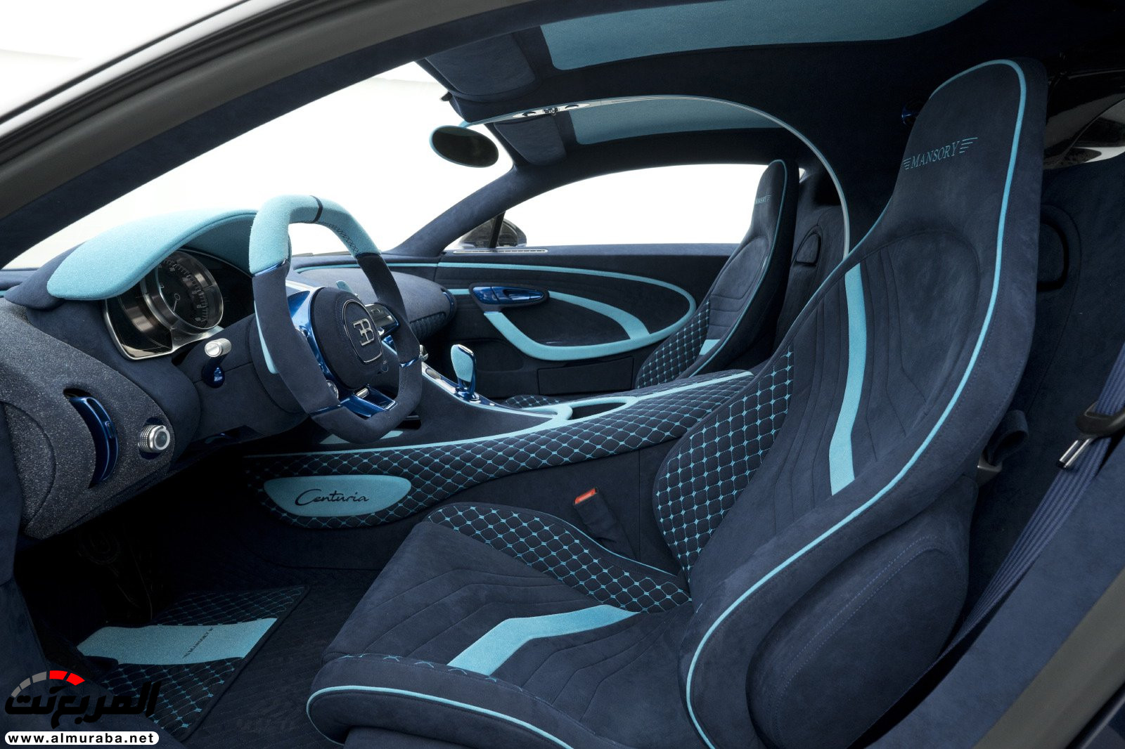تأتي بوجاتي شيرون المعدلة حاملة اسم مانسوري سنتوريا، حيث حصلت الهايبركار على عدد من القطع الخارجية الجذابة المصنوعة من ألياف الكربون المصقولة بشكل فريد من نوعه، وتتضمن هذه الأجزاء مشتت خلفي حاد، جناح الكبير، بعض أجزاء العجلات والرفارف الأمامية والنواشر الجانبية، إضافة إلى غطاء المحرك.