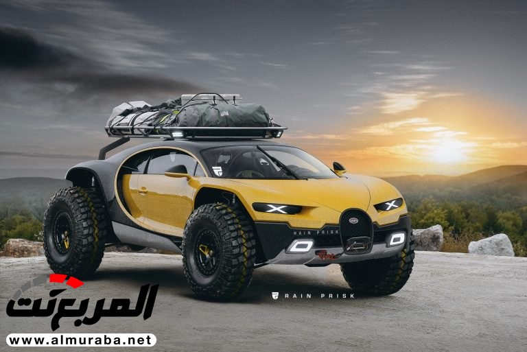 ولكن قد يقوم مصممو بوجاتي بكسر التوقعات وتطوير شيرون مجهزة للتضاريس الوعرة، وقد قام الفنان رين بريسك برسم صورة تخيلية لهذا المنتج غير المألوف.