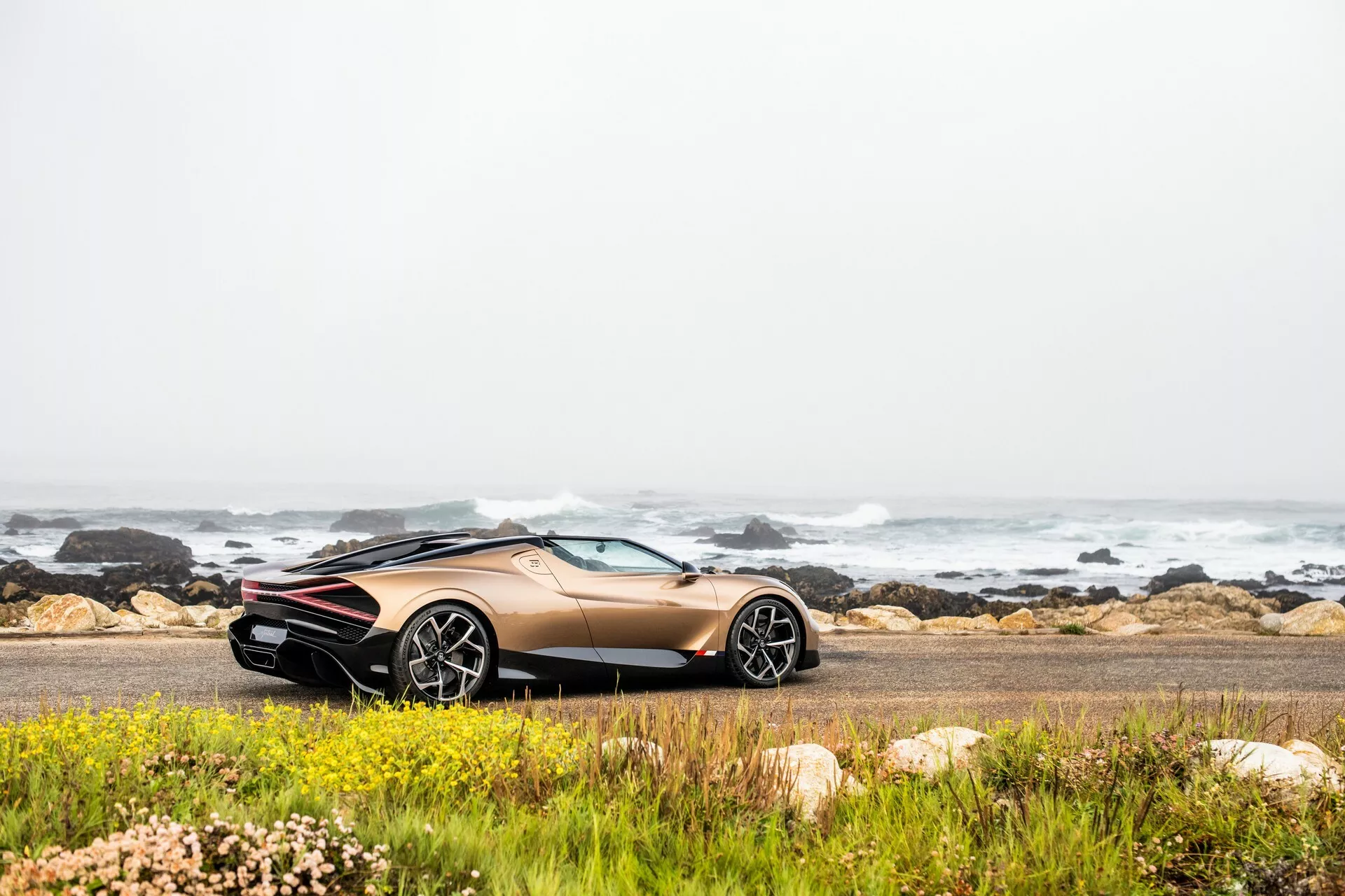 ولم نر نسخة الرودستر أو الكشف لشيرون إلا مؤخراً مع الكشف عن سيارة ميسترال الحصرية جداً، وهي آخر سيارة مزودة بمحرك 16 سلندر 8.0 لتر تيربو رباعي الأيقوني لبوجاتي، بالتوازي مع سيارة بولايد الموجهة للحلبات، قبل إيقافه قريباً.