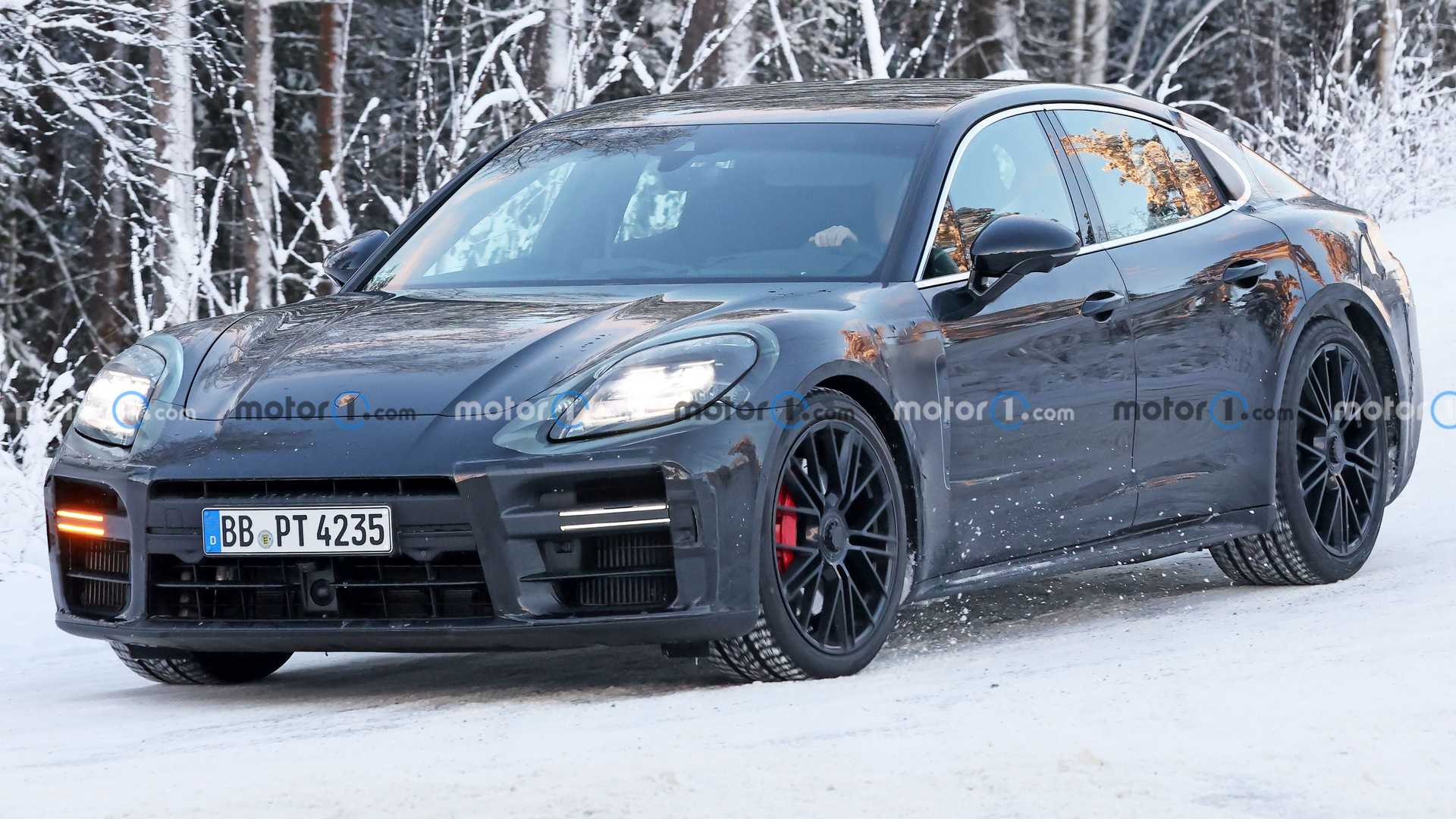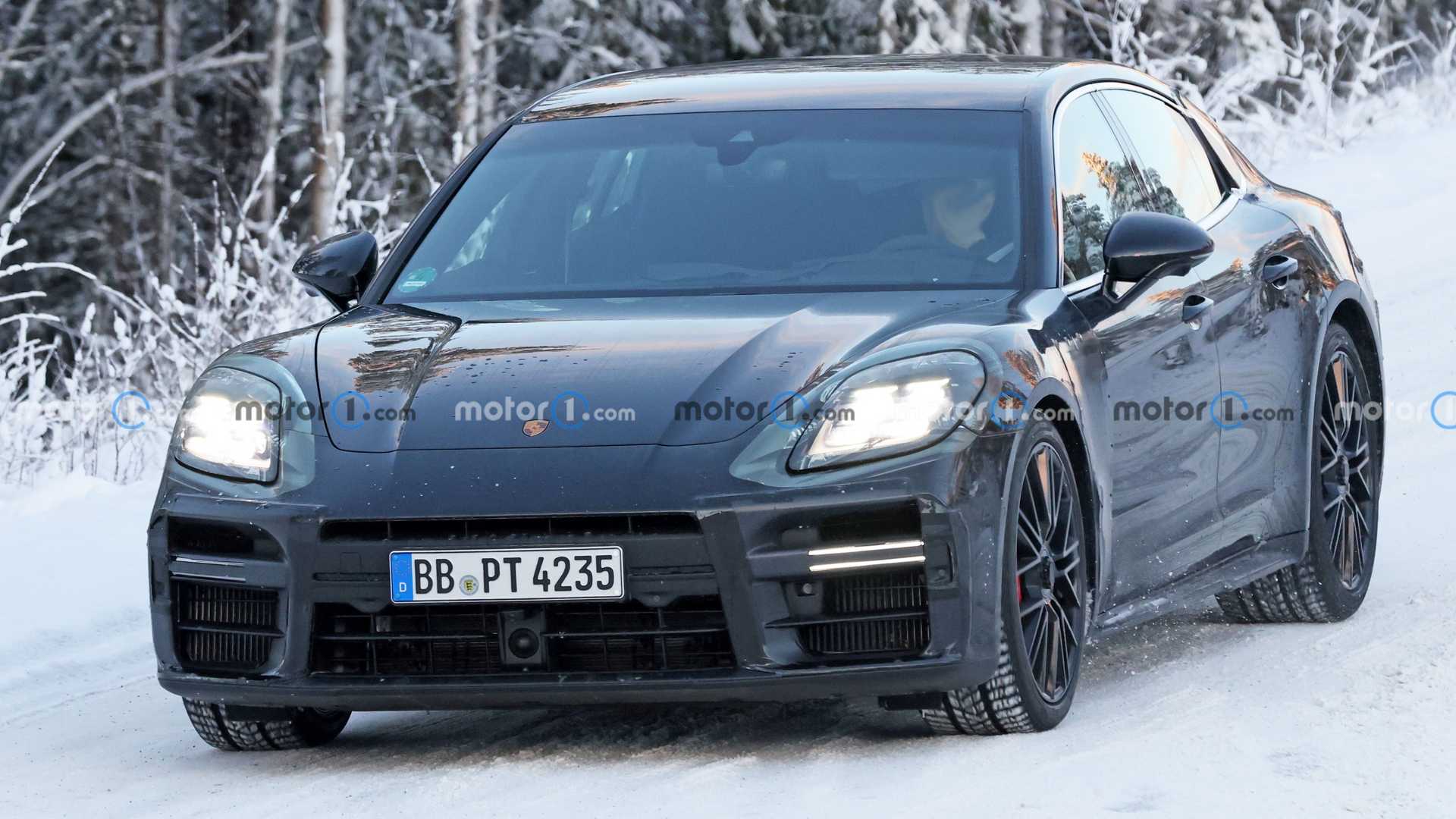 تظهر مقدمة بورش باناميرا مع مصد أمامي مزود بالعديد من القطع باللون الأسود لإخفاء التفاصيل التصميمية، ولكن تظهر بشبك أمامي أكبر حجماً من النسخة الحالية من باناميرا، بالإضافة لحصولها على مصابيح أمامية مزودة بأغطية تمويهية لإخفاء التصميم الخاص بها.