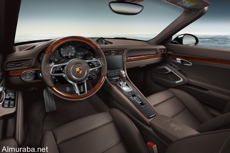 أما بالنسبة لداخل السيارة فهي أكثر إثارة للاهتمام في تفاصيل التعديلات المجراة عليها عن خارجها حيث إضافة المزيد من التصاميم الخشبية وهذا يشمل عجلة القيادة ولوحة العدادات وألواح أبواب السيارة وفي الحقيقة إن هذا المزيج جميل للغاية مع فرش السيارة من الجلد ذا لون الإسبريسو (الإسبريسو لونها مائل للون البنّي)-, أيضا من الملاحظ أن شعار بورش المتواجد بالذراع المركزي المتواجد بين المقعدين الأماميين مضفًا عليه بعض المعدن وكذا هنالك بعض التفاصيل المعدنية هنا وهناك بداخل السيارة وهذا لتوفير بعض التفاوت والتناسق مع التصاميم الخشبية, التصاميم الخشبية لسيارة كهذه السيارة هي أمر نادر للغاية حقيقة.