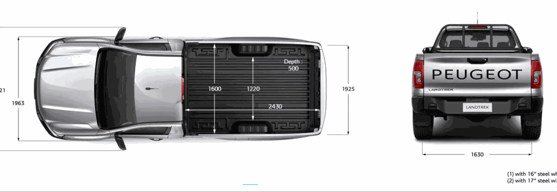 كذلك ترتكز سيارة البيك أب الفرنسية على جنوط مصنوعة من سبائك الألمنيوم الخفيفة من بيجو Style لإضفاء مظهر مميز مع ضمان أداء الدفع الرباعي لنقل حمولة ثقيلة أو على طريق سريع.