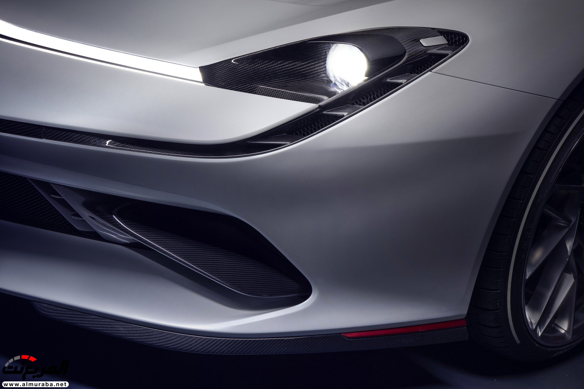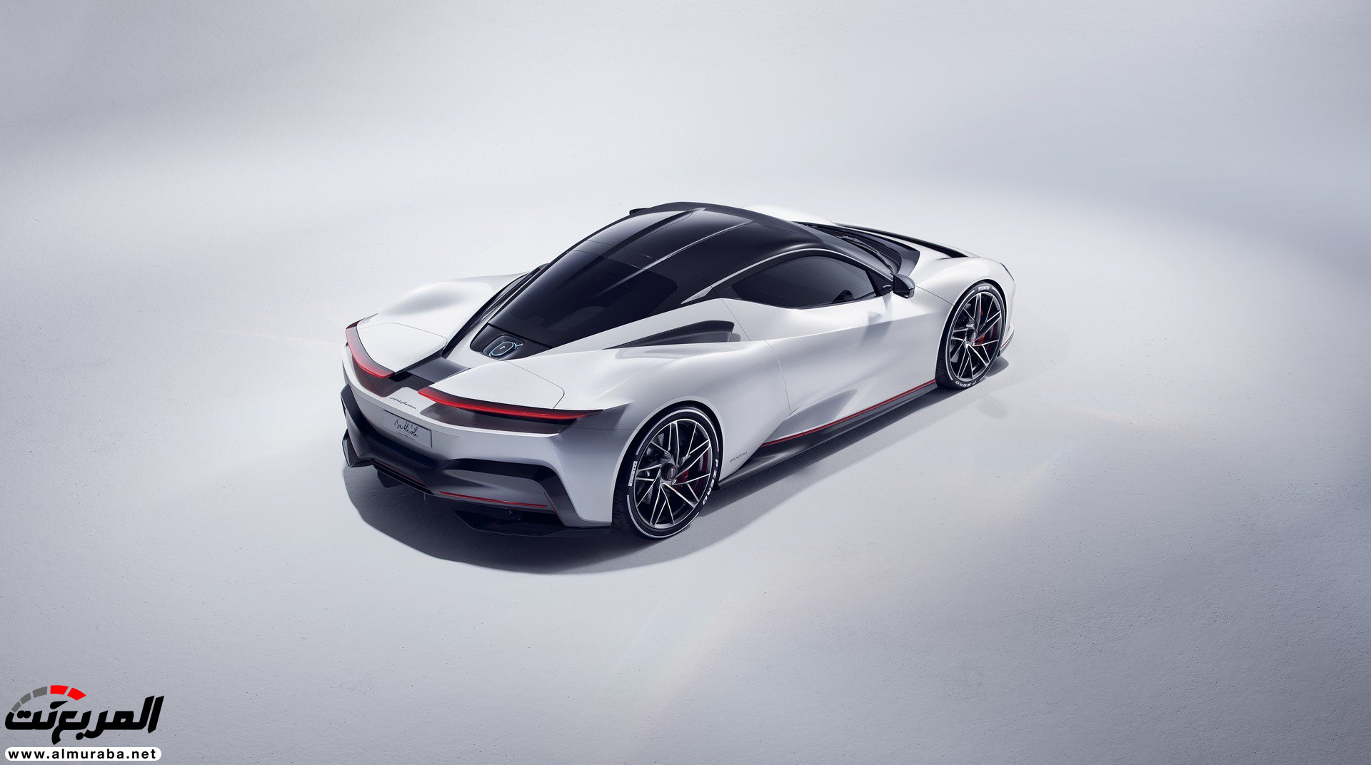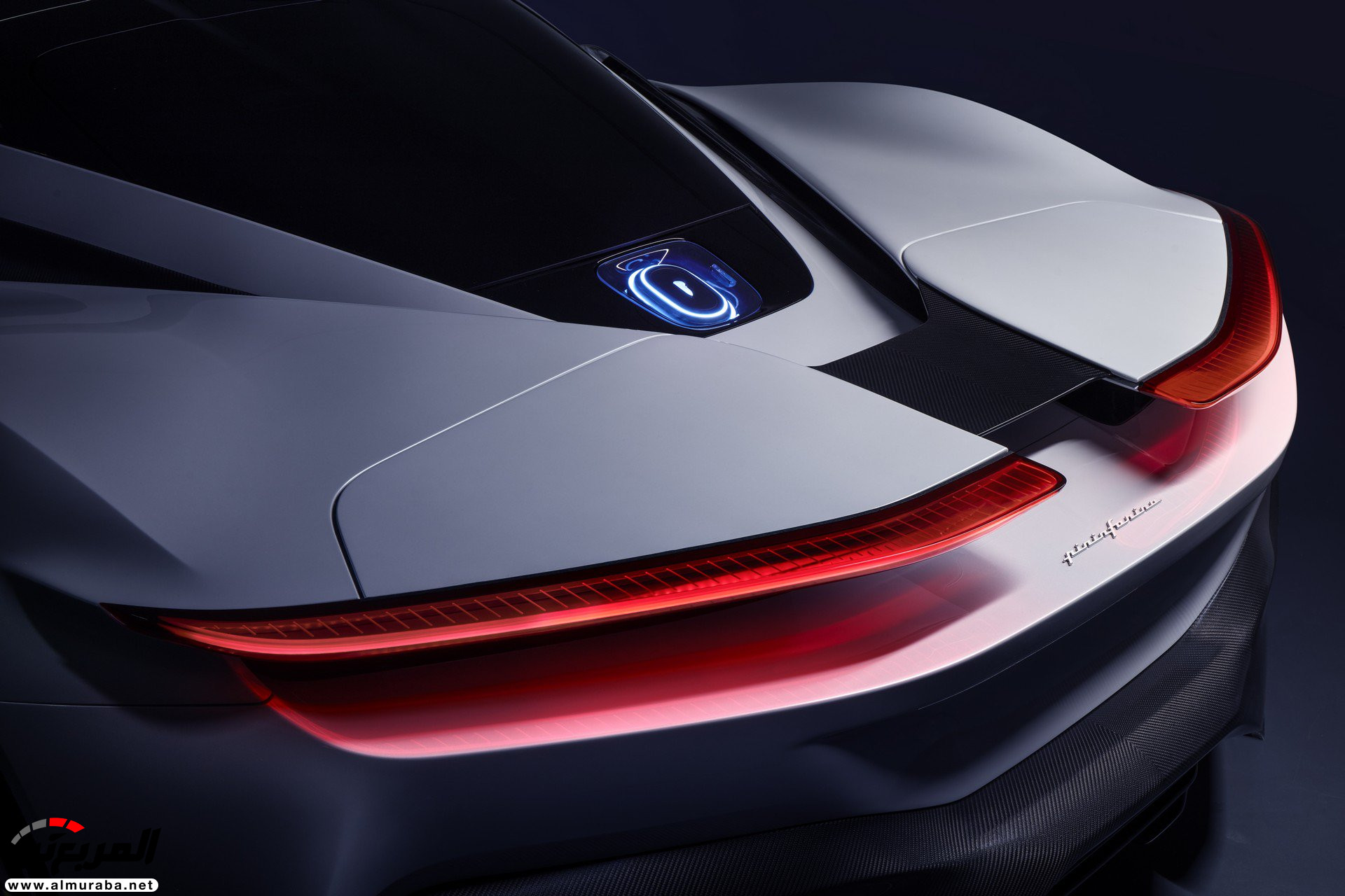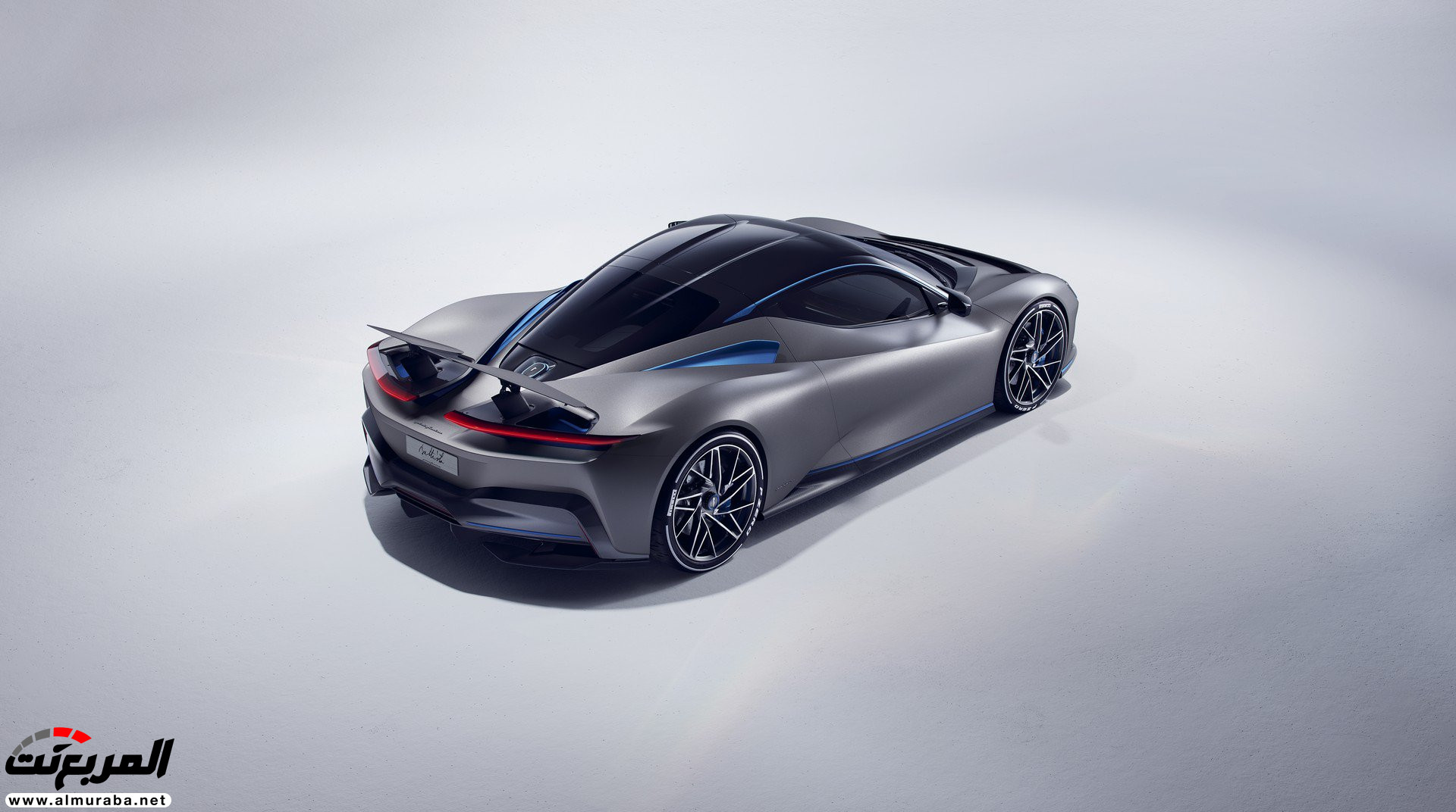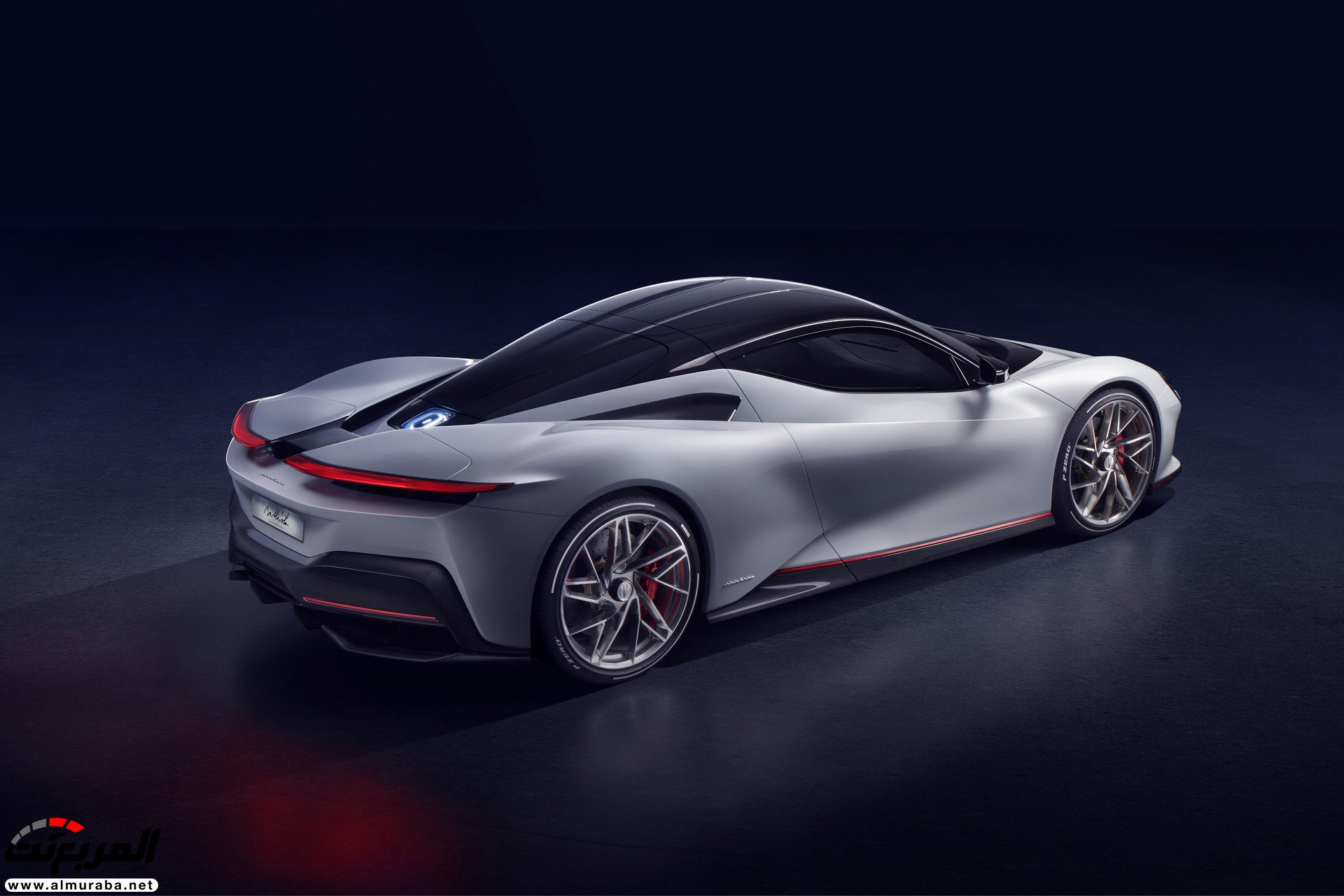 بالانتقال للخلف، سنرى هيكل انسيابي ومقصورة قيادة دائرية التصميم مع سقف طويل، مصابيح خلفية طافية، جناح خلفي نشط ذو خاصية مكابح هوائية، بجانب وجود عجلات 21 إنش خفيفة الوزن ذات 6 مكابس مكابح سيراميك كربوني.