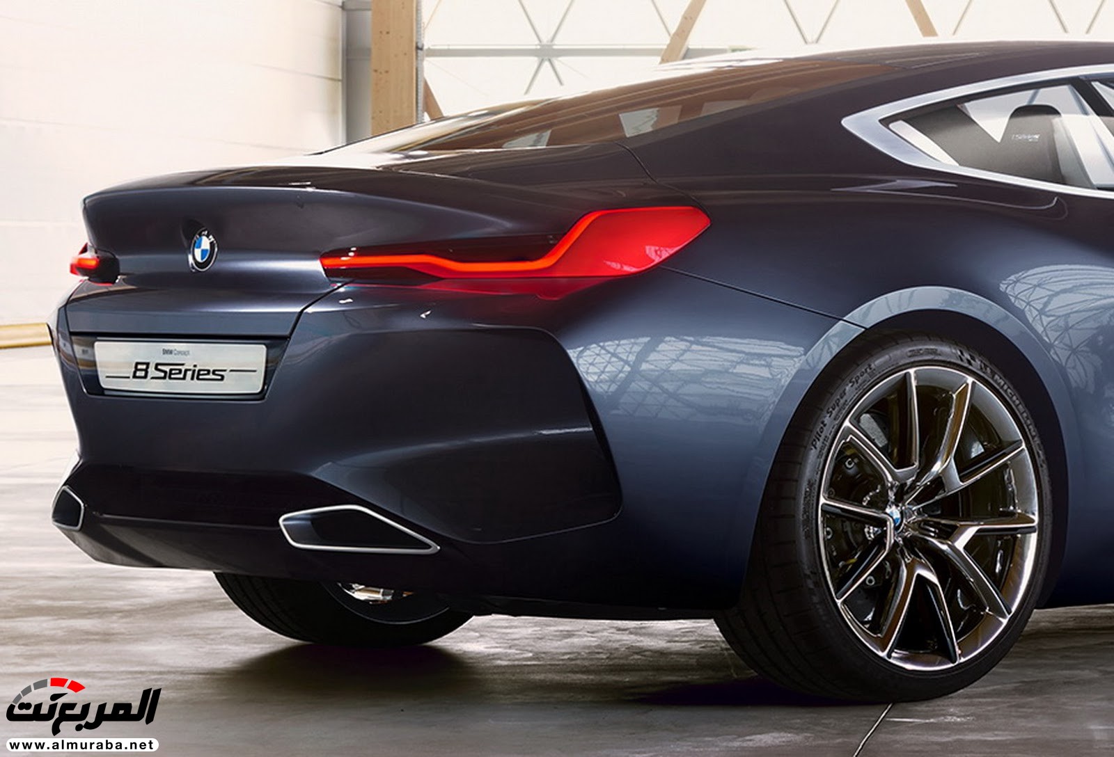 قامت بي إم دبليو بإعطاء كونسيبت الفئة الثامنة جسدًا ذو هيكل رياضي عضلي، والذي يتوافق تمامًا مع شبكة المبرد الكُلية، بينما الجوانب منحوتة بشكل متناسق للغاية مع خط السقف المنخفض وخلفها الذي يقع بأعلاه جناحًا أنيقًا، وكل ذلك يتكامل بسلاسة مع جنوطها الضخمة الـ 21 إنش.