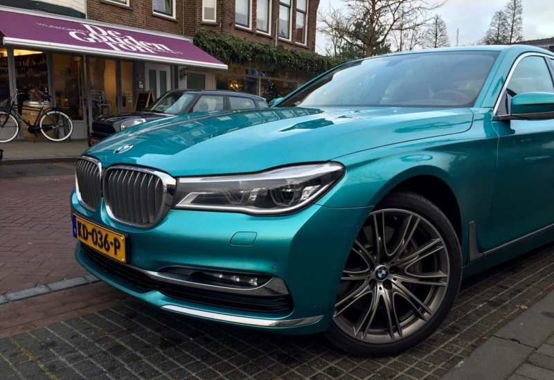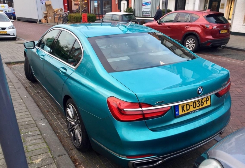 إثر ذلك قام المالك الهولندي لبي إم دبليو 750i المتواجدة بالصور أدناه بطلب طلاء مركبته باللون الفيروزي الذي هو عبارة عن أخضر فيه زُرقة مُعطيًا السيدان الفارهة ذات الخمس أبواب طابعًا آسرًا للقلوب يجعلها جاذبة للأنظار كما لو أنّها سيارة خارقة..