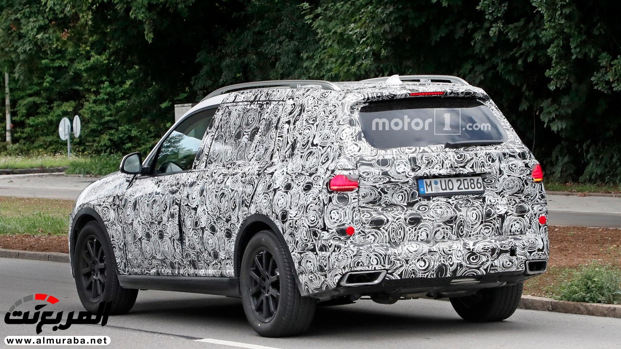 المصابيح الخلفية إنتاجية كذلك، ولكن بي إم دبليو وضعت تمويهات كثيفة عليها لإخفاء تصميمها، كما أن جناح السقف الصغير والعادم يبدوان جذابان للغاية كذلك، بالإضافة إلى ذلك فالـ X7 لديها أبواب خلفية كبيرة وذلك لتسهيل الولوج إلى صف المقاعد الثالث.