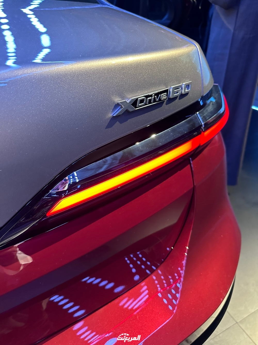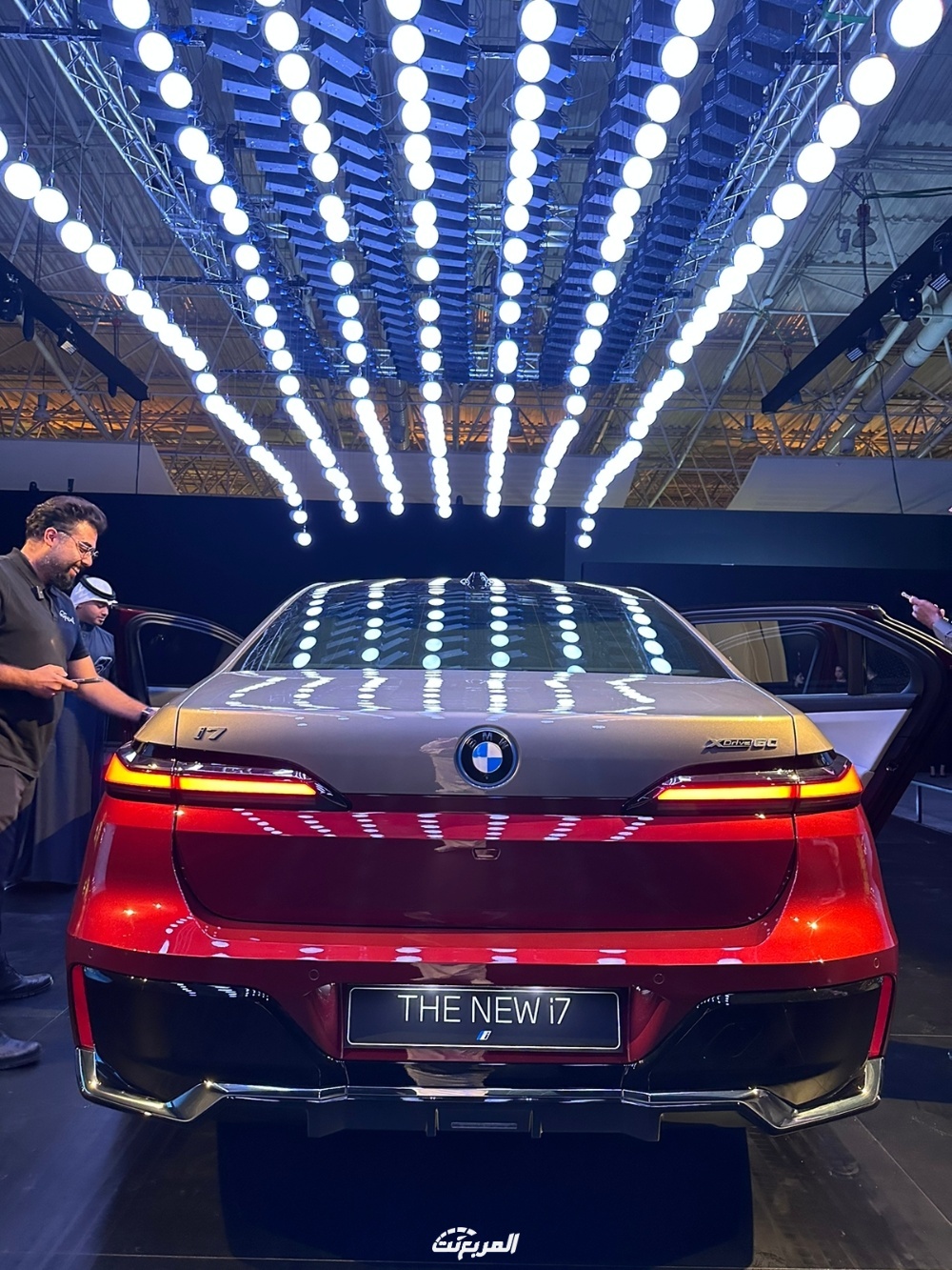 بالإضافة إلى تصميم جذاب ممن الجانب مع مقابض الابواب الاوتوماتيكية والحديثة، وحساسات جانبية على هيكل السيارة، وتأتي النسخة الكهربائية بالكامل من السيارة بقاعدة عجلات طويلة تصل إلى 5.400 ملم، ومن جهة الخلفي نرى تصميم مميز للنسخة الكهربائية من السيارة الجديدة، والتي تتميز بامتلاك شعار BMW يحيط به خط أزرق، بالإضافة إلى أنها تحمل شعار I7 باللون الأزرق أيضًا، حيث تعتمد بي ام دبليو على اللون الأزرق لتميز سياراتها الكهربائية ضمن أسطول سياراتها المميزة.