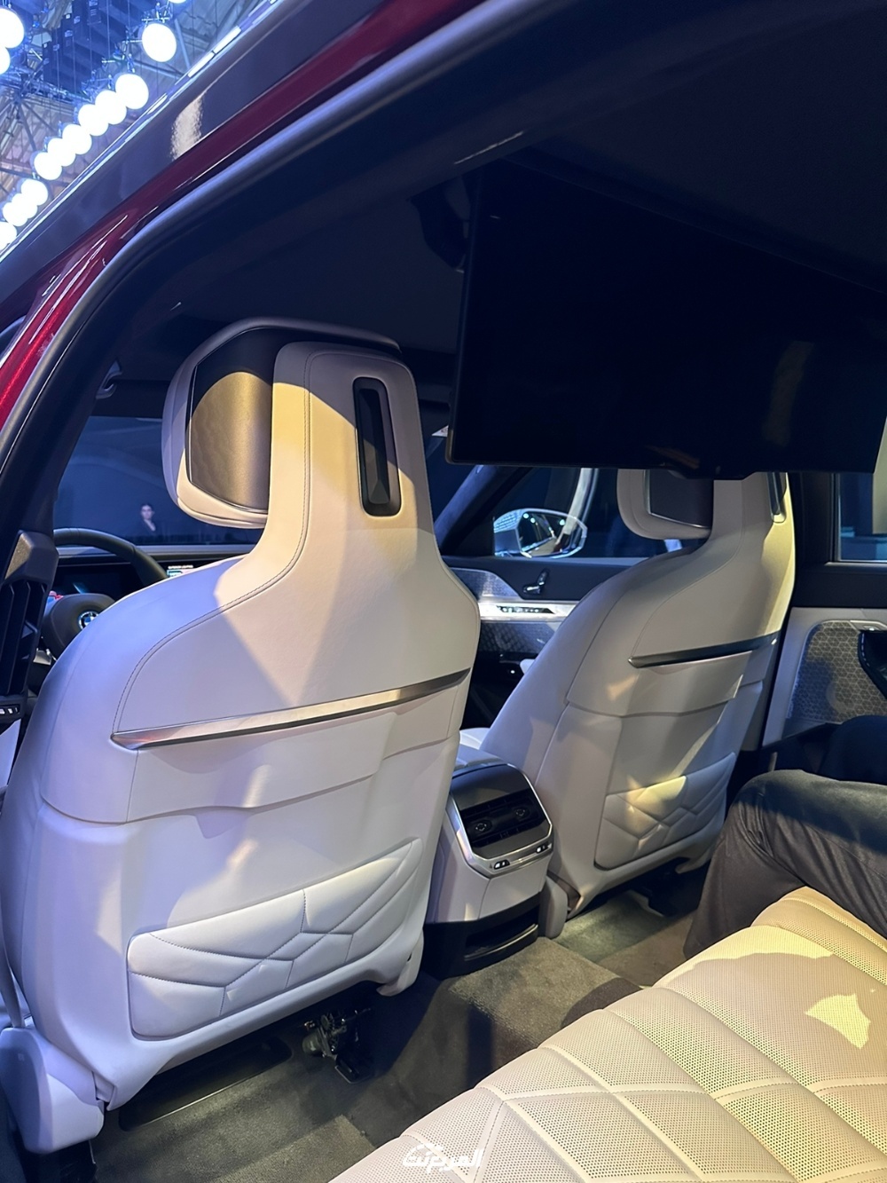 فضلًا عن مجموعة الشاشات التي تتوفر في داخلية السيارات، منها شاشات الأبواب في الجهة الخلفية والتي تتيح للركاب في المقاعد الخلفية إمكانية تعديل وضعيات المقاعد، والتحكم بشكل كامل في أنظمة السيارة المختلفة، كما أن المقاعد تأتي من الجلد الفاخرة، بالإضافة إلى مقود قيادة متعدد الوظائف من الجلد، بالإضافة إلى شاشتين عملاقتين بحجم 14.1 و13.1 بوصة، تدعمان نظام iDrive 8 الأحدث من BMW.