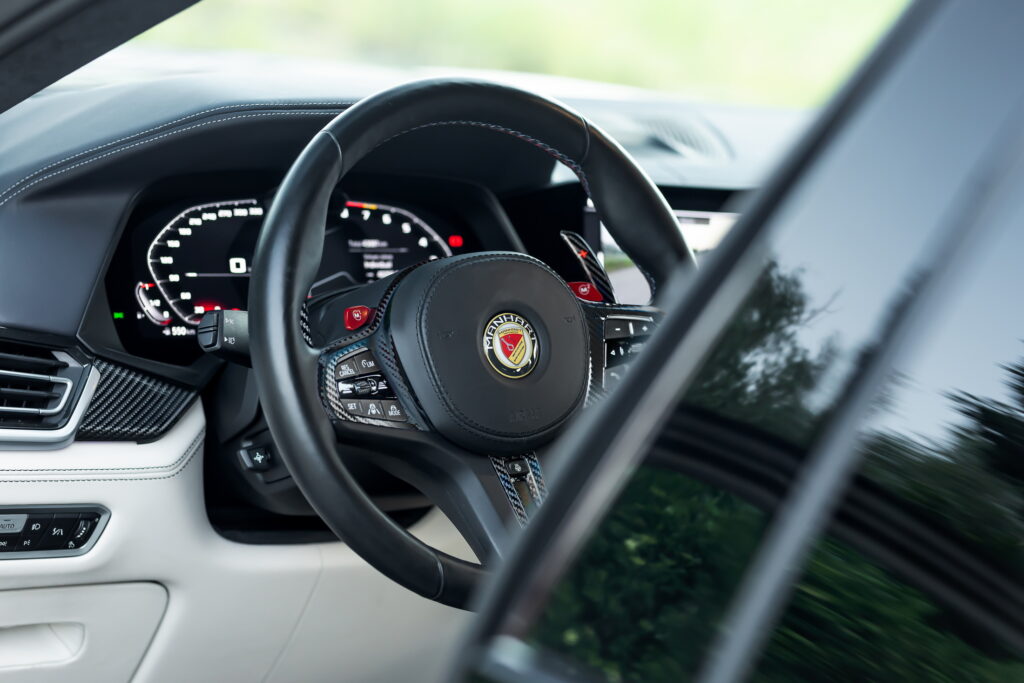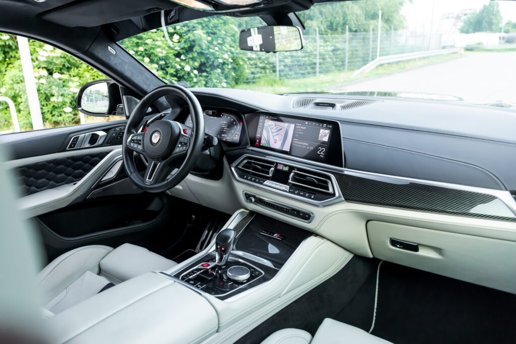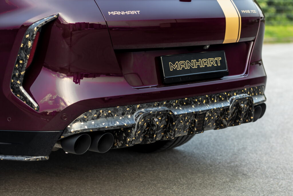 تستكمل مانهارت حزمة التعديلات الخارجية الفريدة باستبدال شعارات بي ام دبليو بشعارات مانهارت، بالإضافة إلى وضع عجلات رياضية ضخمة بقياس 23 إنش مع طلاء حواف العجلات باللون الذهبي، وبالرغم من التعديلات الخارجية، لم يرغب مالك السيارة من تعديل الداخلية التي تتميز قياسياً بالعديد من قطع ألياف الكاربون بإصدار M.