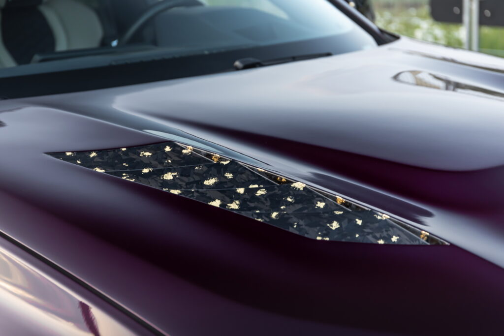 حصلت بي ام دبليو على قطع ألياف الكاربون المزودة بالرقائق الذهبية بجميع أنحاء السيارة من الخارج حيث يمكنك رؤيتها بالشبكة الهوائية الأمامية و الأجزاء المكشوفة من غطاء المحرك المصنع من الألياف ولكن تم طلائه باللون الأرجواني، وتستمر القطع مع مشتت الهواء الأمامي والخلفي وأقواس العجلات الجانبية، والجناح الخلفي.
