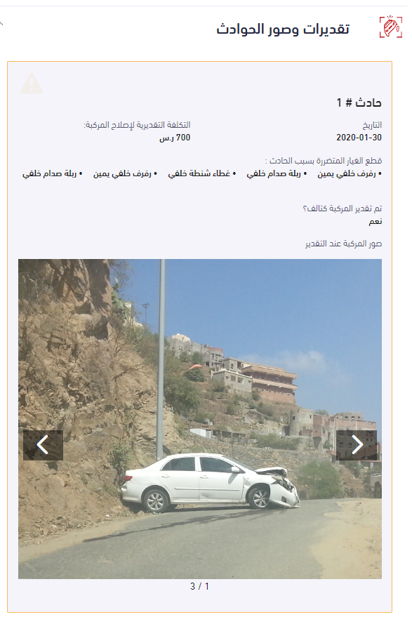 - الحوادث السابقة مع التقديرات وتوفير الصور إن وجدت.
