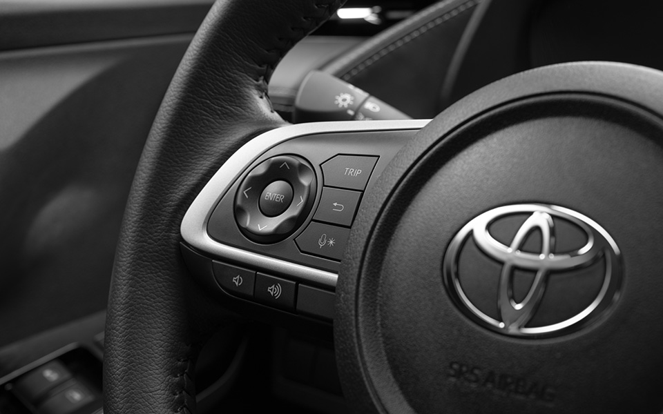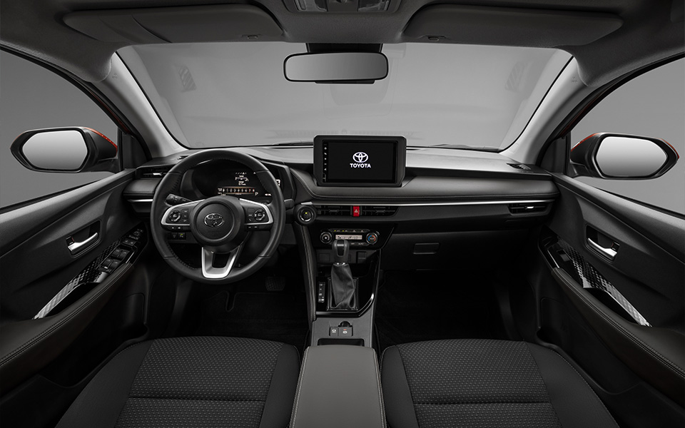وتأتي مقاعد تويوتا يارس بكسوة من القماش الفاخر، وتكفي 5 ركاب، وتميز الديكور الداخلي بلون أسود لامع، ويوجد نظام صوت من 6 سماعات ويوجد مكيف هواء أوتوماتيكي وفتحات تكييف خلفية. ويأتي المقود بازرار التحكم في الصوت ومثبت السرعة وشاشة المعلومات ويأتي مغلف بالجلد وقابل للتعديل بالتحريك للأمام والخلف. ويمكن الدخول إلى يارس بواسطة نظام الدخول الذكي، وبدء تشغيل السيارة من خلال الزر الذي يدعم التشغيل والإيقاف. وفي الكونسول الأمامي توجد لوحة شاحن لاسلكي للهاتف الذكي، ومنفذ USB لشحن الأجهزة في الصف الأول ومنفذ مزدوج في الصف الثاني. وتأتي شاشة المعلومات والترفيه بحجم 9 بوصة مع دعم آبل كاربلاي والبلوتوث وبث الرؤية من الكاميرات الخلفية.