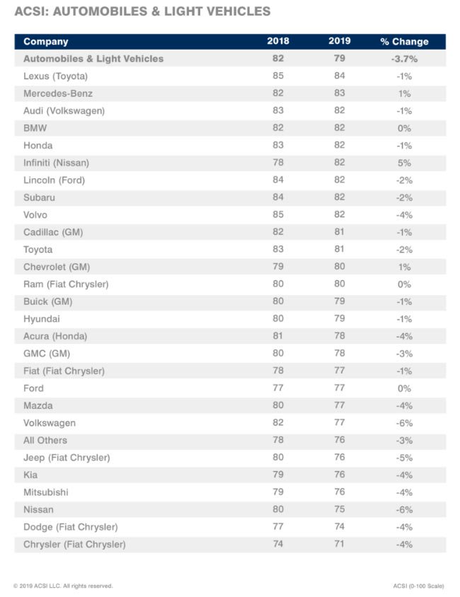 المربع نت – عقدت منظمة مؤشر رضا العملاء الأمريكية ACSI دراسة جديدة مؤخراً كشفت خلالها عن انخفاض معدل رضا العملاء بسياراتهم، حيث انخفض معدل رضا العملاء بنسبة 3.7% عن العام الماضي ليصبح في المتوسط 79% بعد هبوط رضا عملاء 21 من بين 27 علامة سيارات مختلفة بالدراسة مع تصريح العملاء بأن الجودة والقيمة قد انخفضت.