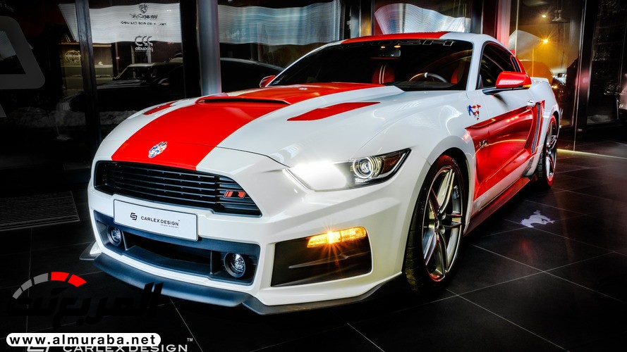 شركة كارليكس ديزاين مزجت تصميم الدودج تشالنجر والموستانج لإنتاج سيارة معدلة بقوة 727 حصان وعزم دوران 610 رطل-قدم، بطلاء خارجي أبيض وأحمر مصقول، وقمرة بالجلد الاحمر الفاخر.