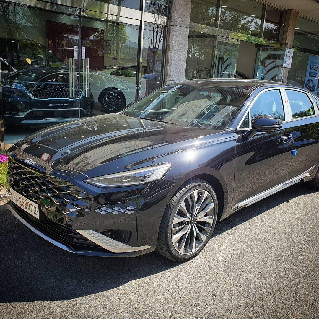 كيا K8 هي أول سيارة تستلم شعار العلامة الجديد، كما تجسد السيارة فلسفة التصميم الجديدة لكيا، وتتمتع الواجهة بشبك وجه النمر على شكل مجوهر مندمج بالمصدات الأمامية ما يجعل الموديل مختلفاً للغاية عن سيارات كيا الأخرى.