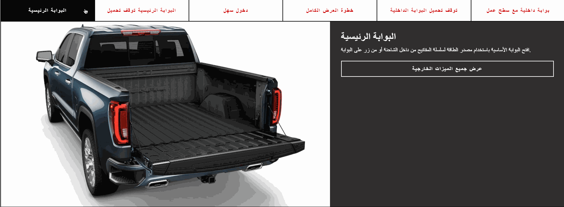 دينالي سييرا 1500: العديد من التكنولوجيا المتقدمة لمساعدة السائق بما فيها رؤية 15 منطقة عبر الكاميرات وشاشة عرض على الزجاج الأمامي 15 بوصة وباب صندوق الشحن MultiPro الأول من نوعه مع 6 وضعيات وظيفية مختلفة، وتأتي مع محرك V8 سعة 6.2 لتر متصل بناقل حركة 10 سرعات أوتوماتيك.