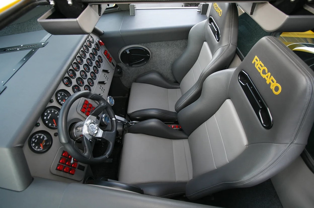 ظهرت السيارة باللون الأصفر بهيكل خارجي من الفولاذ المقاوم للصدأ مع أجزاء من الألمنيوم، وتظهر مقصورة القيادة بتصميم رياضي يركز على الأداء فقط مع العديد من العدادات المختلفة بلوحة القيادة، وتأتي بمقعدين للسائق وراكب إضافي.
