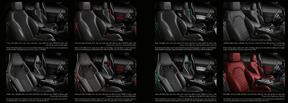 - مقاعد رياضية جلد وألكانتارا مع خياطة حمراء