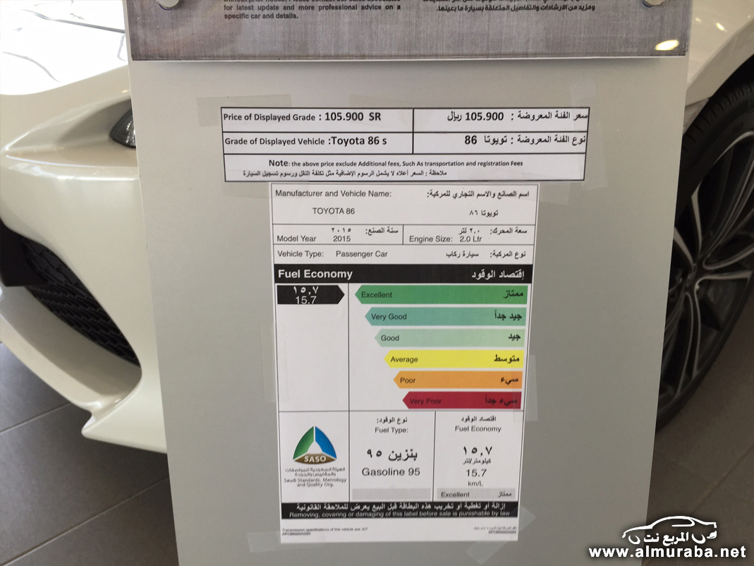 وتبدأ اسعار تويوتا 86 2015 بداية من 90,000 ريال سعودي حتى 115,000 الف ريال سعودي.