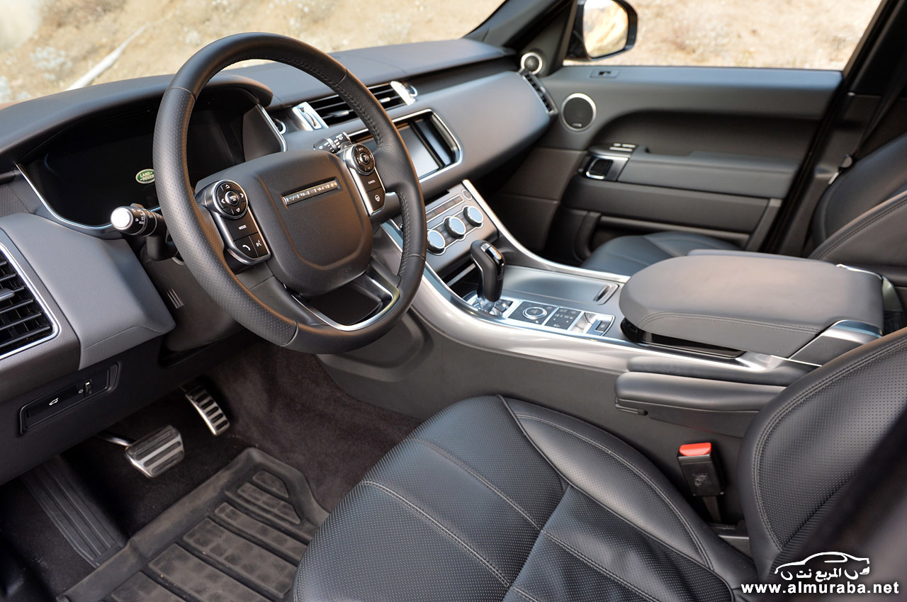 من الداخل، رنج روفر سبورت الجديدة لعام 2015 تحتوى على تصميم داخلي فريد وفاخر فعجلة القيادة شكلها مميز ونادر ويسهل التحكم بالاضاءة الداخلية على حسب المزاج الخاص, حافظت على هوية الشركة الإنجليزية العريقة، حتى لو كان مالكها “هندي” والقصد هنا مجموعة “تاتا” العملاقة، فجاءت السيارة بشكل قريب جدا من شقيقتها الأكبر رنج روفر 2014، وكذلك تشبه إلى حد ما رنج روفر إيفوك الصغيرة، مع إضافة بعض التقنيات لراحة وسلامة مستخدمها، حيث أضيف نظام تحذير من الخروج من الحارة أو المسار، ونظام قراءة العلامات والإرشادات المرورية ونظام إضاءة ديناميكي مساعد، ونظام جديد لقياس عمق المياه في حالة القيادة في مناطق مغطاة بها.