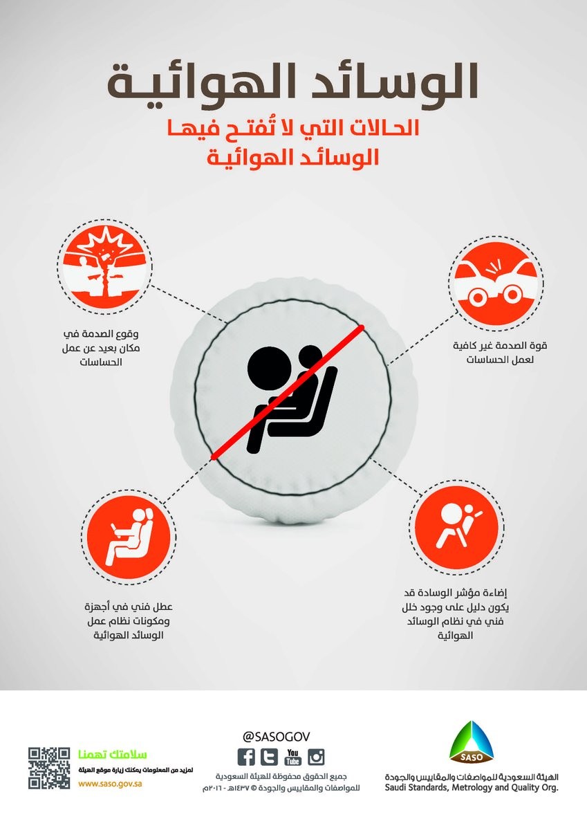 المربع نت – نشرت هيئة المواصفات السعودية على حسابها تقرير مصور حول الحالات التي لا تفتح فيها الوسائد الهوائية شاهد: