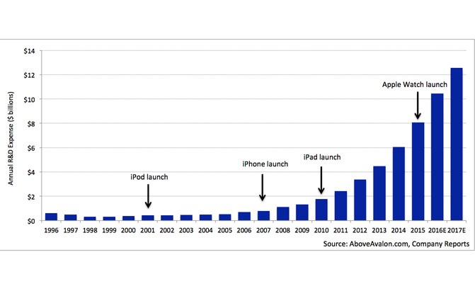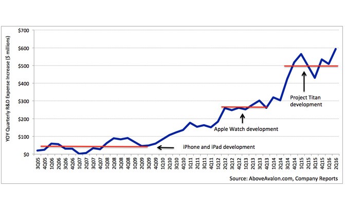 ارتفاع الأموال المخصصة للبحث والتطوير قد يدل على اهتمام آبل بتطوير منتجاتها المعروفة مثل الآيفون وغيره، ولكن حسب المحلل المذكور سابقا، ليس من المتوقع أن تصل قيمة عمل كهذا إلى عشرة مليار دولار، لذا الأرجح -من وجهة نظره- ان تكون الشركة على وشك إنتاج شيء غير مسبوق، مثل سيارة كهربائية ذاتية القيادة.