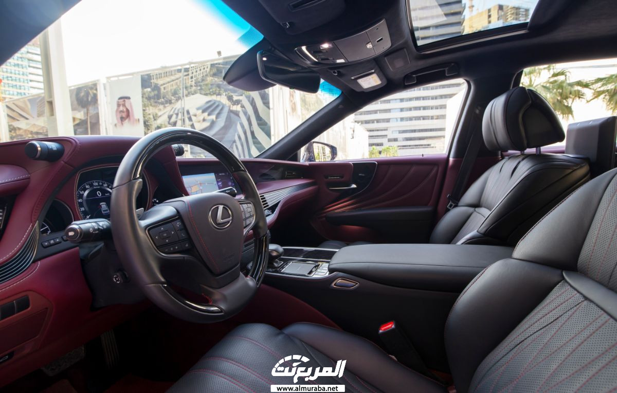 حرصت لكزس على تزويد السيدان الفخمة بكافة تفاصيل الراحة بداية من المساحة الواسعة وصولاً إلى المقاعد الأمامية تمكنك من تعديلها ب 28 نمطا مختلفا مع انظمة التسخين والتبريد والتدليك لكافة المقاعد، ولم تغفل الشركة اليابانية عن تفاصيل الفخامة، فنرى في الداخل الخشب الأنيق والجلود الفاخرة مع الخياطة المتناسقة، هذا بالإضافة الى شاشة عرض وتحكم كبيرة بقياس 12.3 بوصة تدعم التحكم عن بعد.