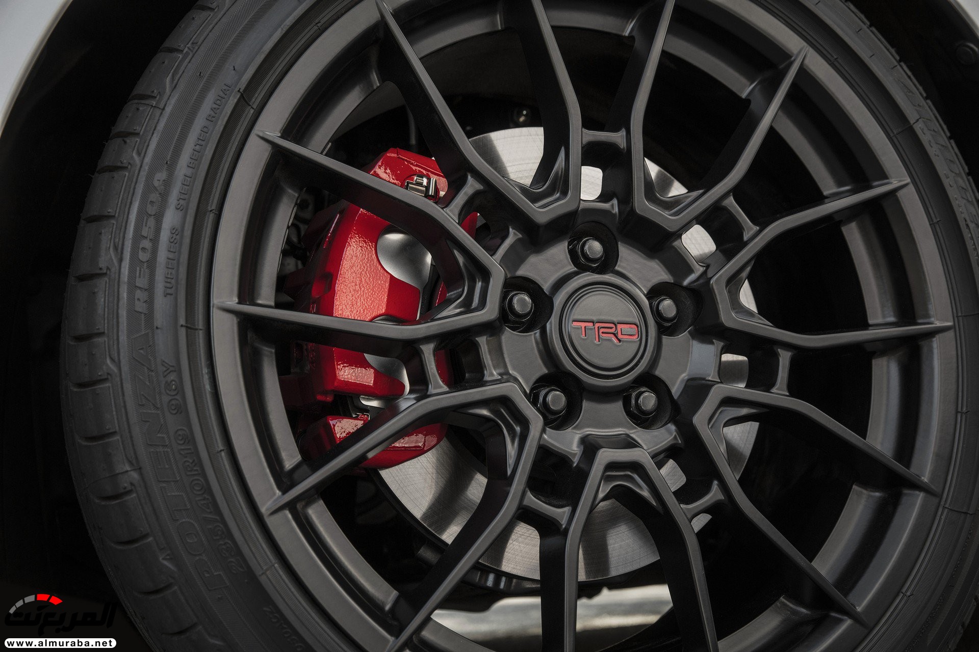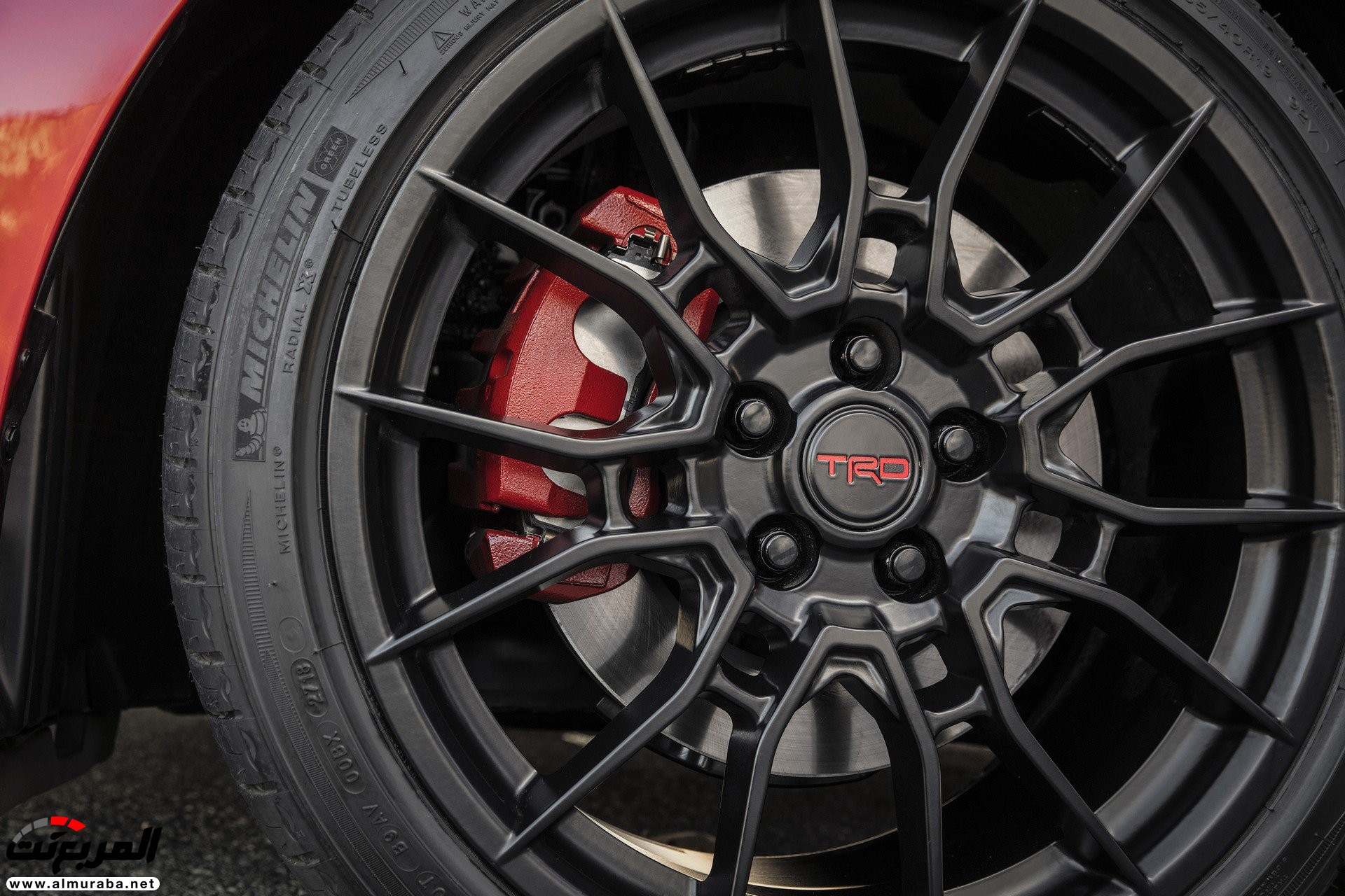 وفيما يتعلق بباقي التغييرات، نجد أنها تختلف بكل طراز، حيث نبدأ أولاً مع كامري TRD التي حصلت على عجلات 19 إنش جديدة ذات وزن أقل بفارق 1.4 كجم من العجلات القياسية، مع إطارات Bridgestone Potenza الصيفية، إضافة لوجود نظام تعليق أقوى مع أعمدة منع انحراف لتزيد من قوة الثبات بنسبة 44% في الأمام و67% في الخلف عند المنعطفات.