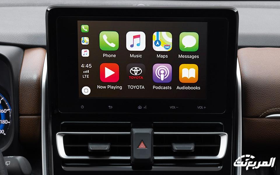 تأتي شاشة المعلومات والترفيه نفسها في جميع تويوتا انوفا وهي شاشة 8 بوصة تعمل باللمس وتدعم الربط بالهاتف الذكي عن طريق آبل كاربلاي وأندرويد أوتو.