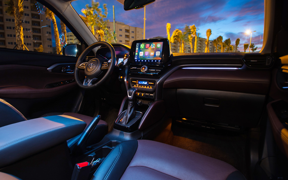 وبالدخول إلى مقصورة تويوتا اوربان كروزر 2023، يمكنك ملاحظة تلك اللمسات العصرية الأنيقة والتجهيزات الذكية التي تمنحك تجربة قيادة ممتعة ومُريحة.