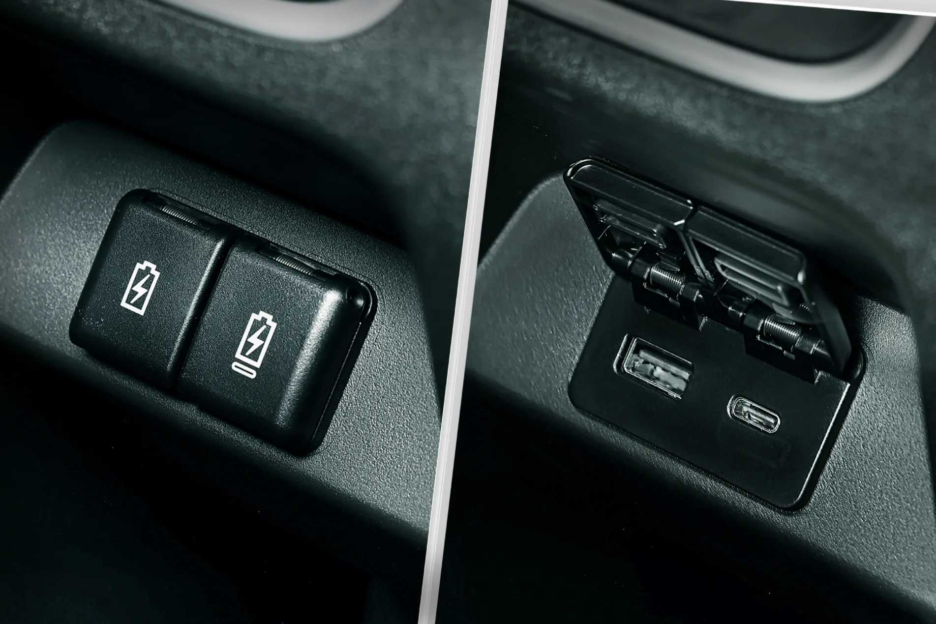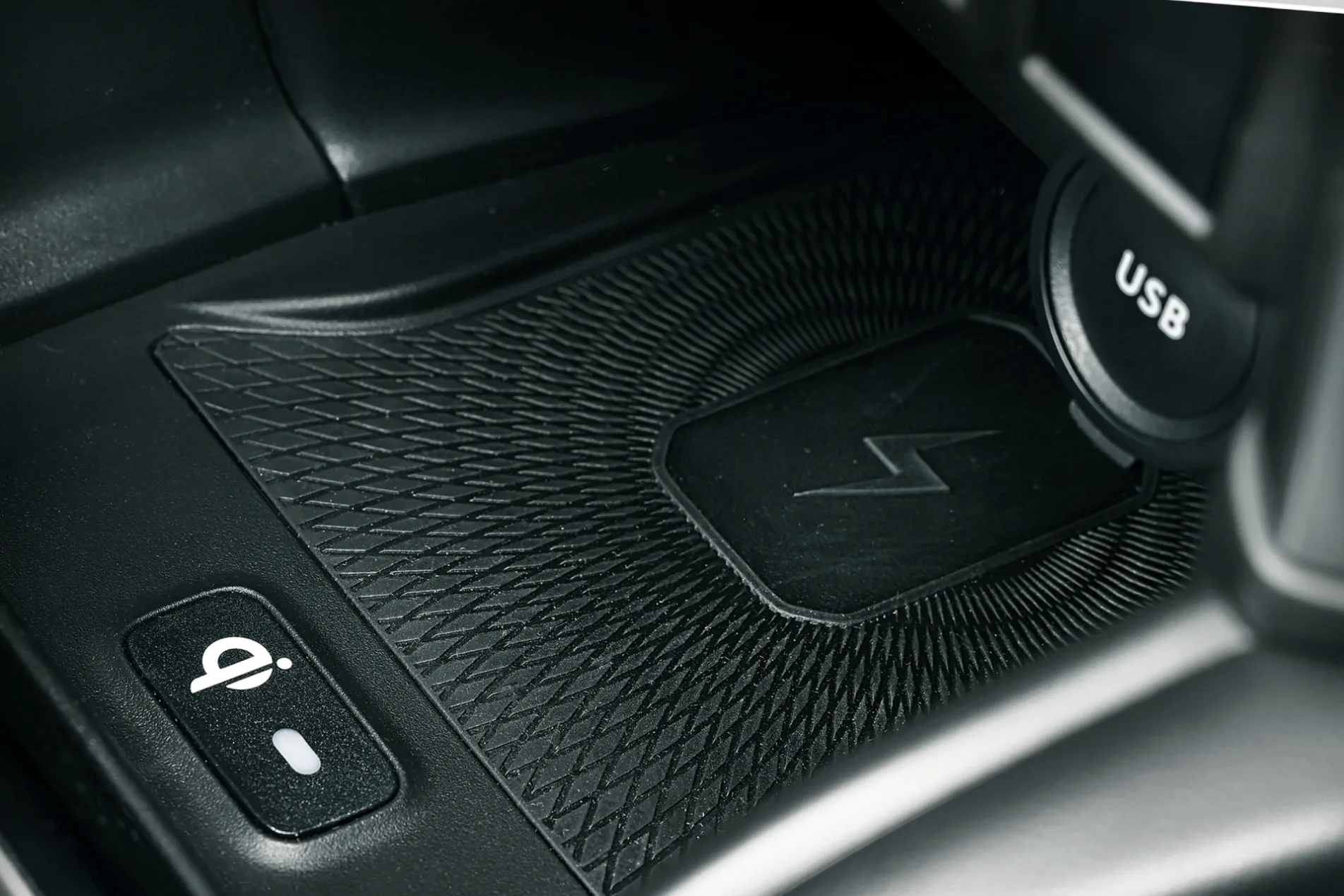 بينما يوجد شاحن لاسلكي ومنفذ USB A لشحن الجوال في الكونسول الأمامي. يوجد منفذ USB C الجديد للشحن السريع للهواتف للمقاعد الخلفية.
