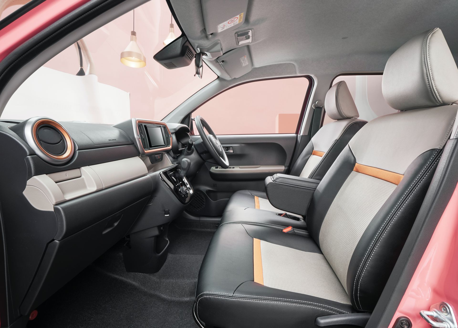 بالحديث عن الألوان، تتوفر السيارة بخمسة ألوان خارجية، كل منها متاح بسقف بلون مختلف اختياري، ويذكرنا اللون الوردي بدايهاتسو بوون ستايل، وهو إصدار خاص آخر يبدو انه كان مصدر الإلهام لتطوير باسو مودا شارم، وبالدخول إلى المقصورة، ستلاحظ حصولها على جلد صناعي وأغطية قماشية مع لمسات ملونة للمقاعد، في حين أن مقعد السائق مُسخن، وتحتوي السيارة على حزمة Navi Ready مع شاشة عرض بانورامية وزجاج يحمي الخصوصية للنوافذ الخلفية.